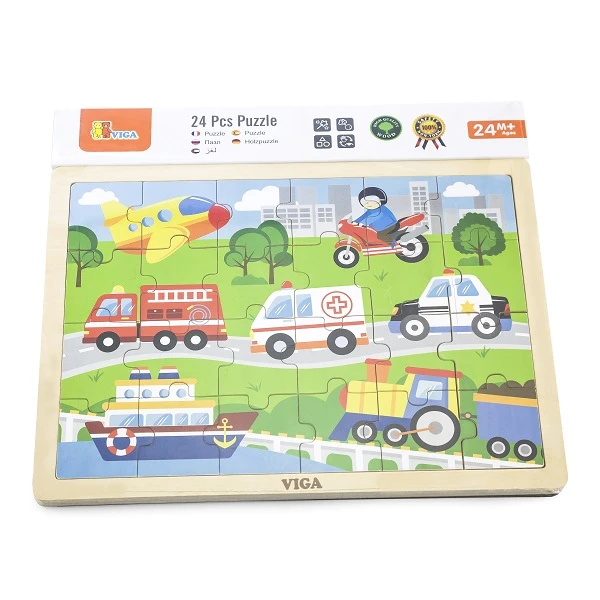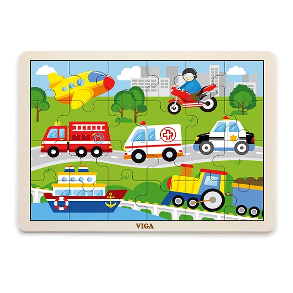 Puzzle din lemn Viga Vehicles, 24 elemente