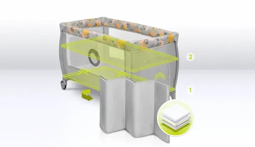 - Produs doi în unu: pătuț de călătorie și țarc de joacă.