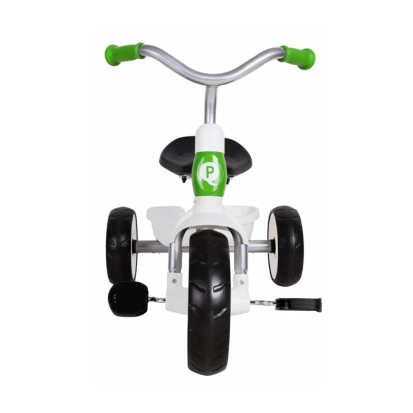Scaun confortabil si conturat, cu spatar jos – impiedicandu-l sa alunece de pe scaun. Pedalele situate in roata motoare din fata au o structura antiderapanta care impiedica alunecarea pantofilor de pe pedale. Functia roata libera permite copilului sa se odihneasca in timp ce parintele conduce.