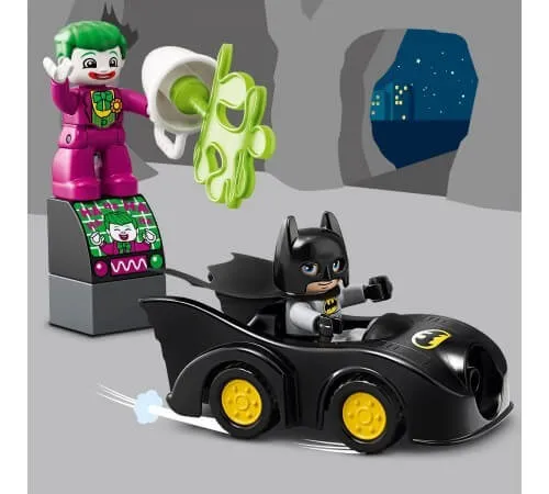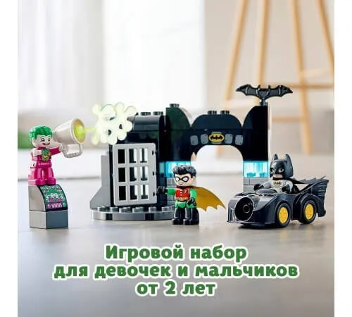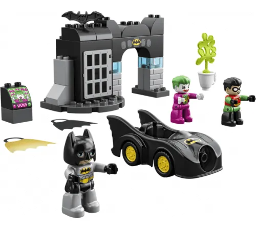 Micii fani ai poveștilor cu super-eroi le vor plăcea ocazia de a se afla în adevărata „Batcave” din LEGO DUPLO DC Comics și de a se simți ca eroul benzilor desenate preferate. Celebrul ticălos Joker încearcă din nou să se ascundă de legendarul Batman și de asistentul său Robin. Pentru a-i urmări, vor avea nevoie de faimosul Batmobile, care este capabil să dezvolte o viteză incredibilă atunci când urmează. Copilul se poate juca singur sau cu prietenii și părinții, interpretând scene demne de a fi prezentate într-un cinematograf. Nu se va plictisi niciodată de acest set!