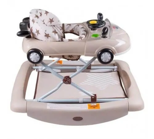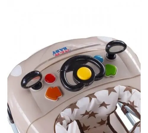 Premergator "Little Racing Car" New Baby în designul modern al unei mici mașini de jucărie cu patru roți și șase airbaguri ajută copilul să mențină stabilitatea în timpul mersului și, în același timp, este foarte distractiv datorită tabloului de joc și capacității de a se transforma cu ușurință în un leagan. Consola interactivă de jocuri include volan, oglinzi rotative, sunete, lumini și poate fi selectată pentru a accesa masa de luat masa. Walker-ul este reglabil în mai multe poziții și are un capac lavabil foarte confortabil și este întărit în spate. Fabricat din material plastic de înaltă calitate.