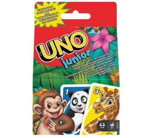 Jocul de cărți UNO simplificat pentru jucătorii mai tineri are mai multe niveluri de dificultate, astfel încât copiii să aibă posibilitatea să se dezvolte pe măsură ce se joacă. Fiecare carte are un animal drăguț și un număr de la 0 la 8, astfel încât chiar și un copil de 3 ani poate găsi meciuri. În timpul jocului, participanții încearcă să scape de toate cărțile comparându-le cu cartea de deasupra pachetului. Trebuie să puneți deasupra o carte care să se potrivească cu culoarea sau imaginea animalului sau cu numărul. Principalul lucru este să nu uiți să strigi „Uno” când mai ai 1 carte în mână! Cu trei niveluri de dificultate, jocul contribuie la dezvoltarea treptată a copilului.