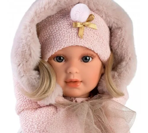 Păpușa Lucia - cea mai recentă colecție a mărcii spaniole Llorens. Lucia este îmbrăcată într-o rochie florală din material mixt, bandă roz și șosete roz. Completează aspectul un poncho roz cu glugă și un fermoar de tul. Brațele, picioarele și capul ei sunt confecționate din vinil plăcut, iar burtica este umplută cu căptușeală moale, ceea ce îl face ideal pentru îmbrățișări. Păpușa este ambalată într-o cutie de carton decorativă. Ne plac papusile spaniole Llorens!