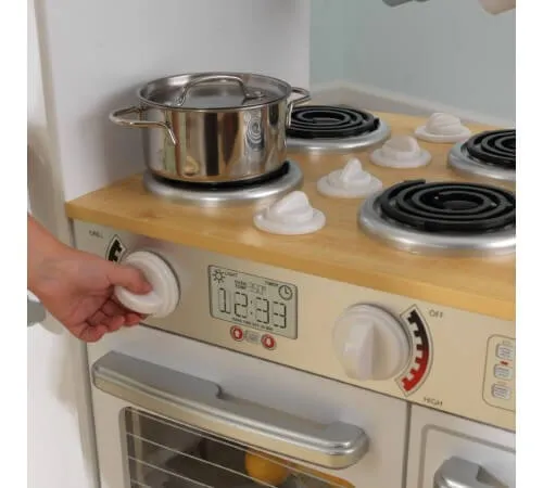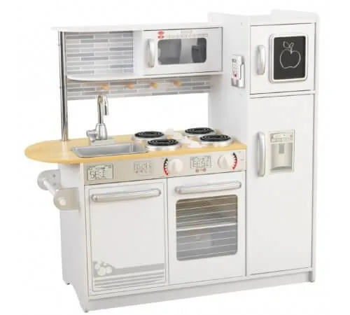 Bucătărie pentru copii KidKraft Uptown 53364 - este timpul să scoateți vasele, să vă puneți o pălărie de bucătar și să gătiți ceva grozav pentru întreaga familie. Cu Uptown White Kitchen, copiii au șansa de a-și îmbunătăți abilitățile culinare și se simt ca cei mai renumiți bucătari din cele mai elegante hoteluri. Bucătăria este plină de detalii inovatoare și forma sa permite mai multor copii să se joace în același timp.