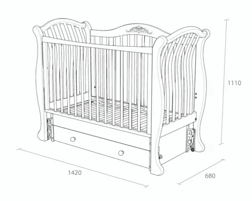 - Peretele frontal al pătului are capacitatea de a coborî, ceea ce face părinții mai ușor să contacteze cu copilul.
