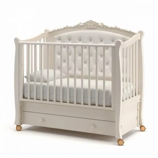 Patuc leagan cu sertar (pe roți) Gandylyan Janete vanilie- pat perfect care reprezintă întruchiparea unui design gindit, confort și buna funcționalitate.