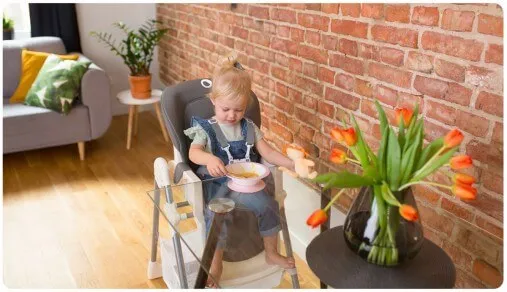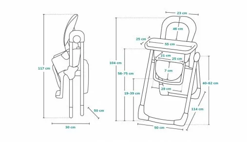 Scaunul are o reglare a înălțimii în 6 trepte, datorită căreia îi puteți regla poziția la aproape orice masă.