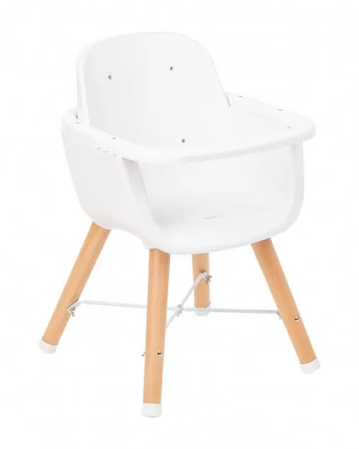 Woody poate fi folosit ca scaun înalt standard până la 36 de luni. Are tavă reglabilă, husă din piele de lux pe scaun și suport pentru picioare pentru un plus de confort.