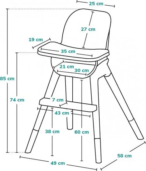 O structură reglabilă a lui Koen este realizată dintr-un lemn de fag durabil și plastic ABS . Finisat cu tampoane antiderapante, picioarele masive garantează stabilitatea și previn zgârierea podelei. Un spătar înalt și un suport pentru picioare care suspendă picioarele asigură confort și ajută la ușurarea coloanei vertebrale a copilului.