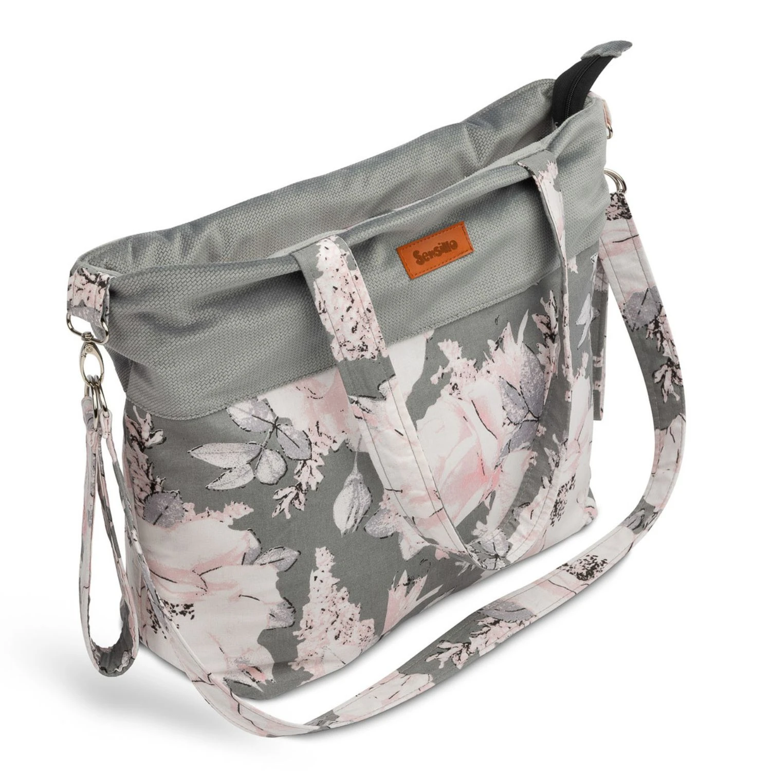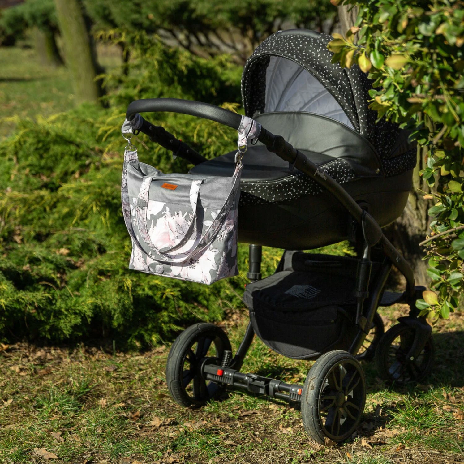 Geantă mare și spațioasă, perfectă pentru plimbări sau cumpărături. Datorită dimensiunilor mari, pot fi transportate toate accesoriile necesare. Buzunarele interioare și compartimentarea funcțională o fac foarte practică. Un element indispensabil al genții sunt curelele universale, cu ajutorul cărora poate fi atârnată de mânerul căruciorului și are o curea de umăr foarte practică.