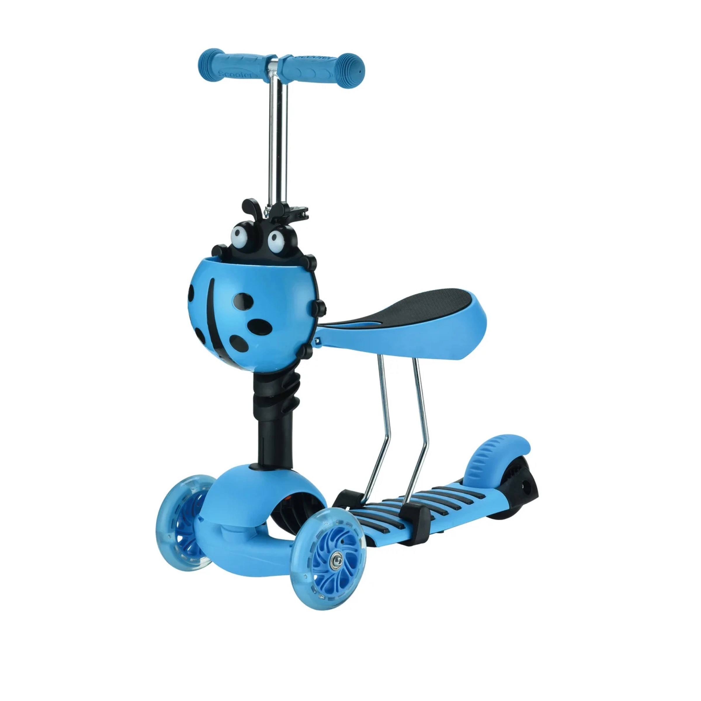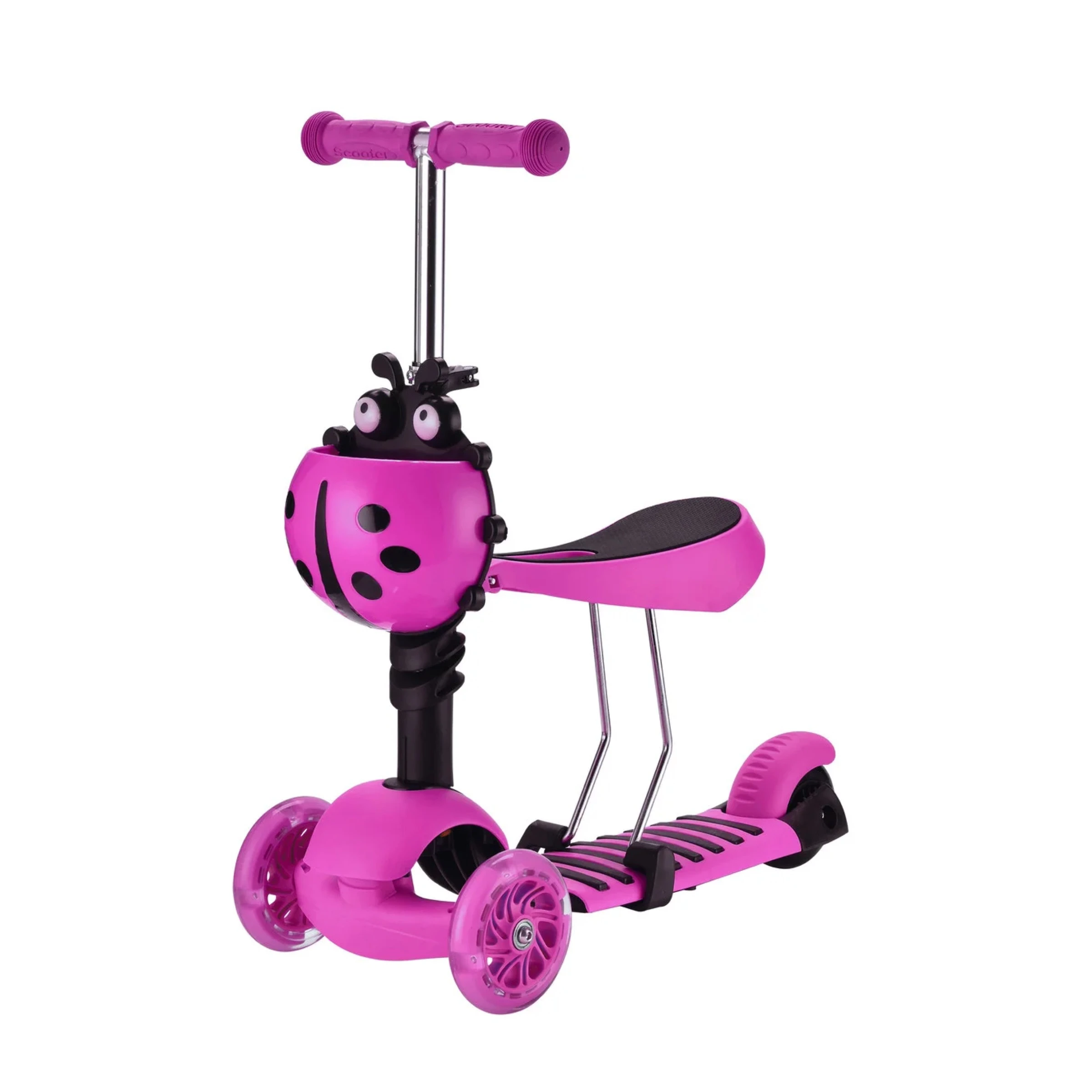 Trotineta cu trei roți pentru copii este o trotinetă neobișnuită cu trei roți. Este foarte versatil datorită designului său. Acest model este potrivit pentru copiii de la vârsta de un an, deoarece la început poate fi folosit ca o bicicletă de echilibru. Folosind-o ca o bicicletă de echilibru, vă dezvoltă mușchii picioarelor și spatelui. Scaunul este reglabil in 3 pozitii de inaltime. Când copilul crește, scaunul poate fi îndepărtat cu ușurință și rămâi cu un scuter obișnuit cu trei roți, cu mâner reglabil pe înălțime. Modelul este echipat cu roti rezistente cu LED-uri in interior. Pentru compactitate, mânerul poate fi îndepărtat.