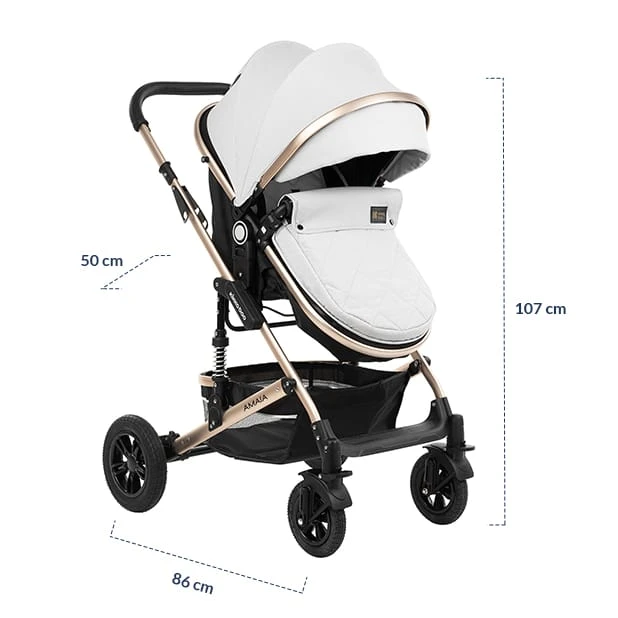 Amaia 3in1 este proiectată pentru mamele moderne, aducând un strop de lux în viața lor de zi cu zi. Scaunul transformabil, suspensia pe roțile din față și pe cadru vor asigura o călătorie impecabilă pentru copil.