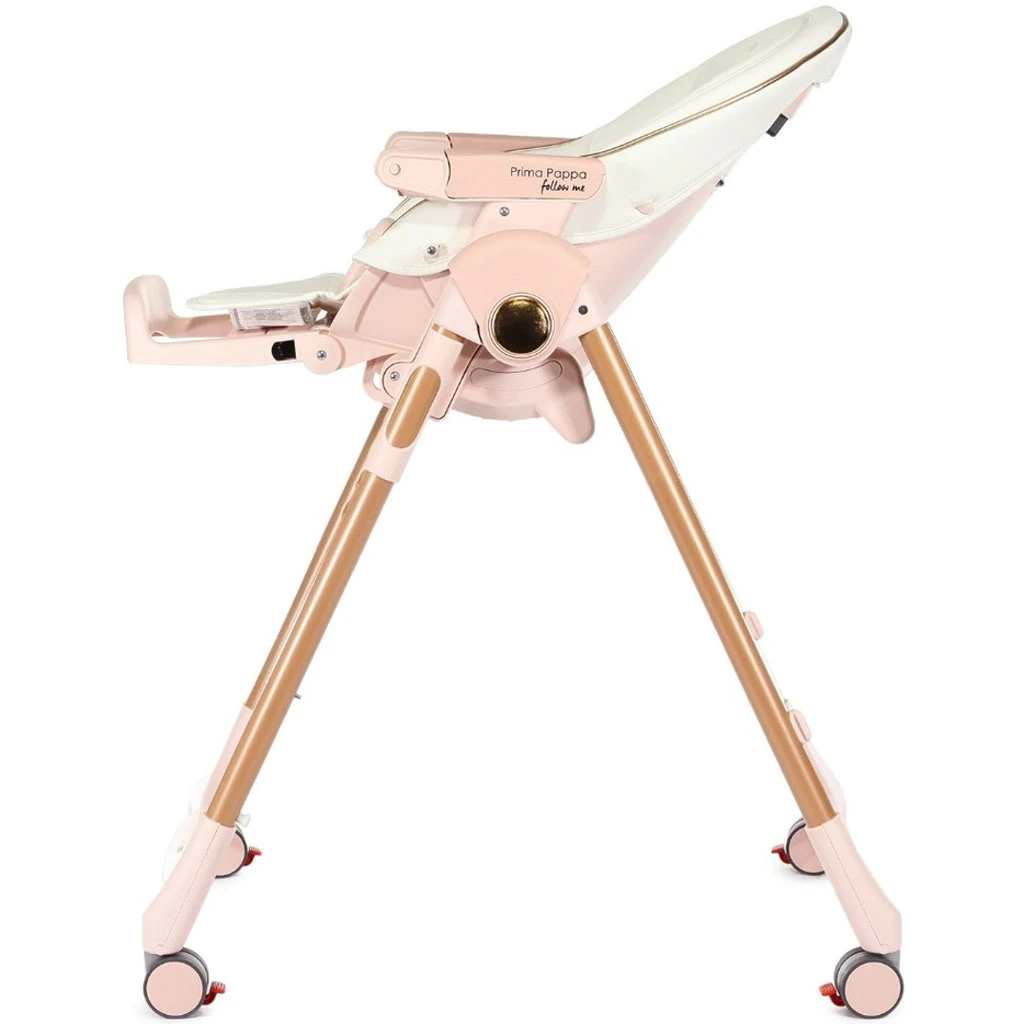 Scaunul înalt Prima Pappa follow me este aprobat pentru utilizare de la naștere și poate servi și ca o șezlong confortabil. Cu cele 4 roți ale sale, Prima Pappa follow me vă urmărește pretutindeni.