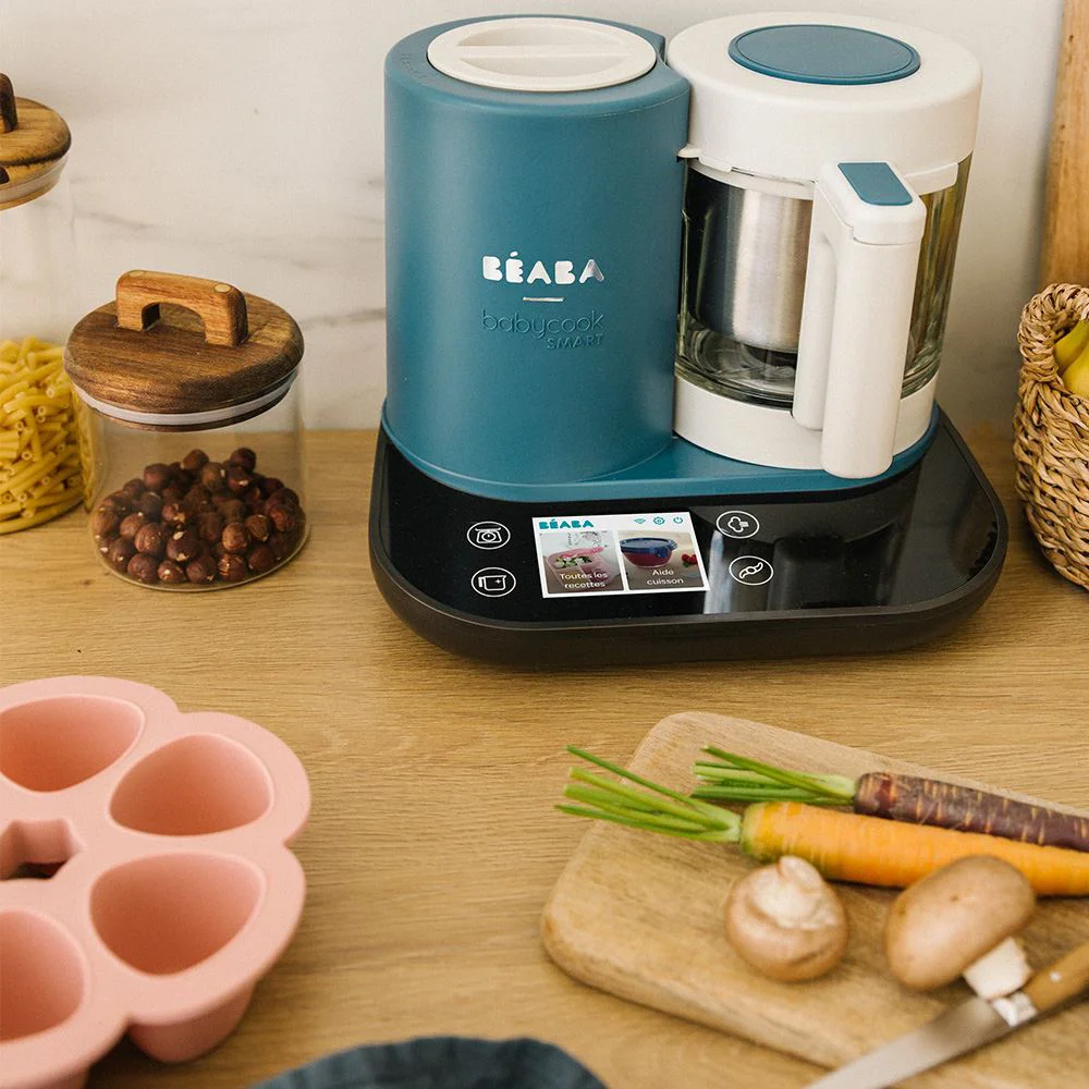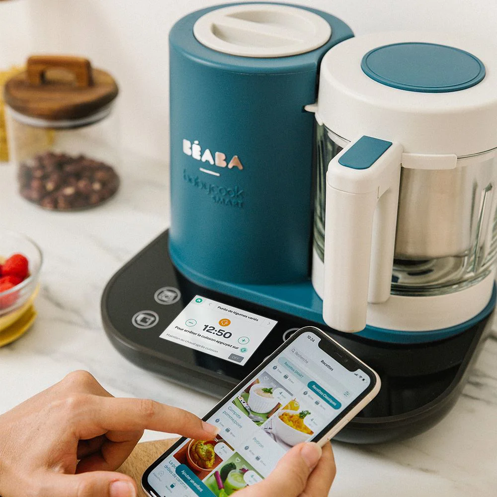 Dispozitivul de bucătărie inovator și multifuncțional cu opțiune de personalizare a dietei Babycook Smart® al brandului francez Beaba îți permite nu doar să pregătești o masă completă pentru copilul tău – de la gustări, la prânz și desert – ci și să planifici întregul meniu, adaptat vârstei, alergiilor și altor nevoi speciale (de exemplu consistența) sau preferințelor gustative. Babycook Smart®, pe lângă faptul că gătește ultra-sănătos la abur, blenduiește și toacă, încălzește și dezgheață, își atinge potențialul maxim după sincronizarea cu aplicația Béaba&Me (disponibilă pentru iPhone și Android). Pe baza informațiilor introduse despre copil, aceasta creează rețete personalizate 100% conforme cu recomandările nutriționale pentru fiecare etapă de dezvoltare, incluzând cantitatea ingredientelor, modul de preparare pas cu pas (de exemplu stabilește viteza de mixare) și timpul de gătire. În plus, ajută la organizarea meniului zilnic sau chiar săptămânal, precum și la crearea listei de cumpărături! Ecranul tactil cu afișaj color și butoane intuitive face utilizarea extrem de simplă, iar toate informațiile sunt ușor de citit. Baza cu ecran funcționează și ca cântar. Babycook Smart® funcționează silențios, permite monitorizarea procesului de preparare în timp real și poate trimite notificări pe smartphone la finalizarea acestuia. De asemenea, menține mâncarea caldă până la deschiderea recipientului.