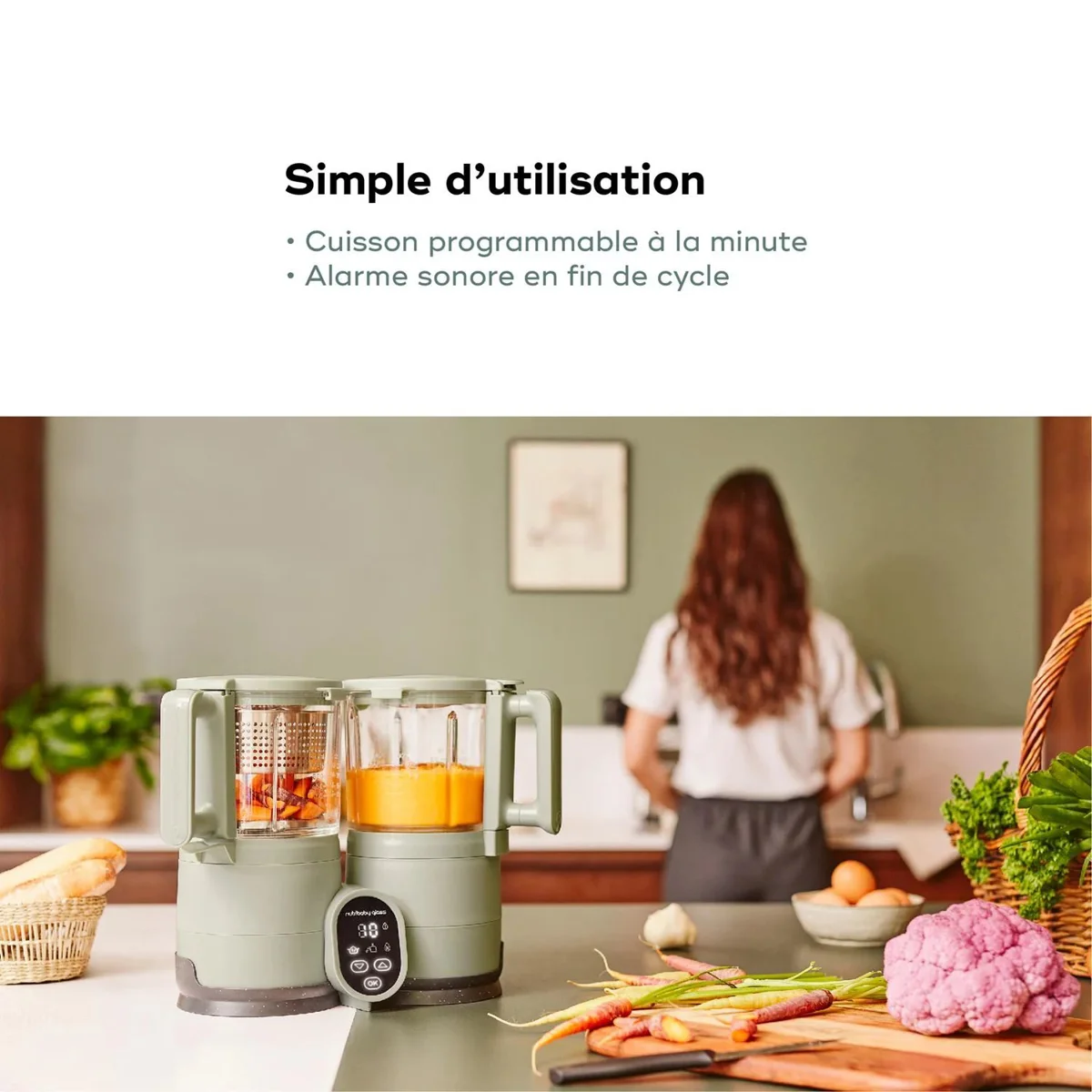 Cel mai eficient aparat de gătit pentru bebeluși din sticlă, acum cu panou de control al temporizatorului, pentru mese de casă gătite rapid și sănătos.
