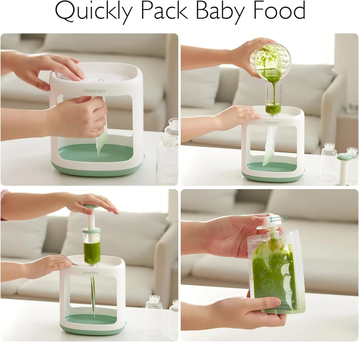 Momcozy Squeeze Station transformă pregătirea piureurilor într-un proces simplu, igienic și eficient, oferindu-ți mai mult timp pentru momentele importante alături de copilul tău.