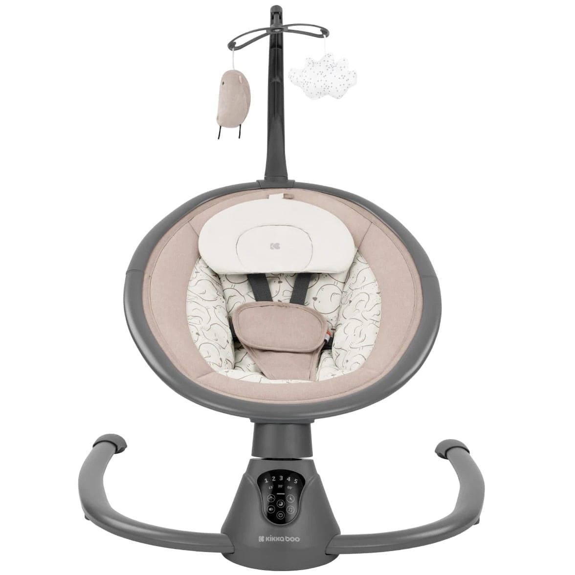 - Funcții interactive: Dotat cu detector de mișcare care activează balansoarul atunci când bebelușul se mișcă, precum și cu panou muzical ce include 12 melodii și 5 sunete naturale liniștitoare pentru un mediu relaxant. Dispune de temporizator cu opțiuni de 15, 30 și 60 de minute.