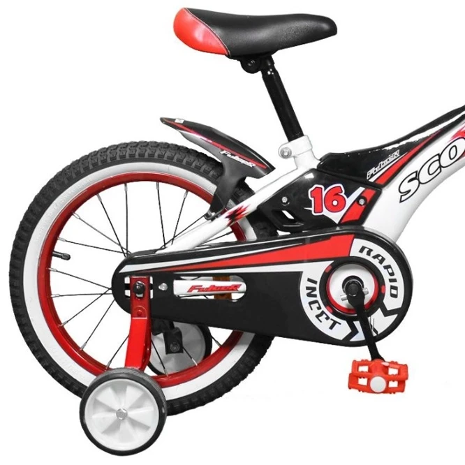 Bicicleta pentru copii Fulger Scout 16" este o bicicletă elegantă și robustă, concepută pentru tinerii bicicliști care învață să pedaleze. Având culori îndrăznețe precum roșu, negru și alb, această bicicletă este echipată cu roți ajutătoare pentru o stabilitate suplimentară. Anvelopele de 16 inci asigură o plimbare lină, iar designul sportiv și cadrul durabil o fac perfectă pentru copiii care doresc să pedaleze cu încredere. Bicicleta include și caracteristici de siguranță, cum ar fi apărătoarea lanțului și aripi de protecție în față și în spate, ceea ce o face atât sigură, cât și distractivă pentru copii pe măsură ce își dezvoltă abilitățile de ciclism.