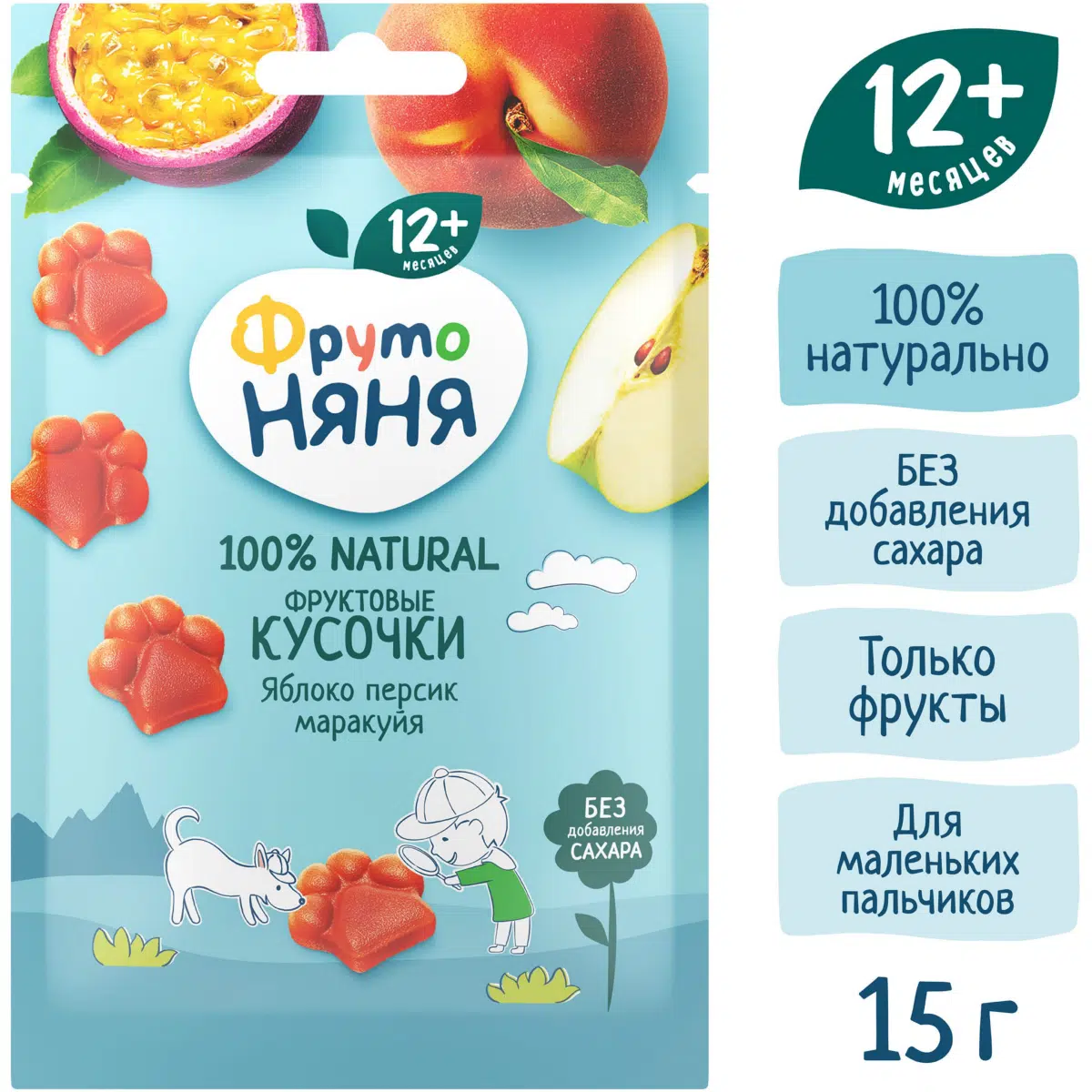 Faceți cunoștință cu noutatea! Bucățelele de fructe ФрутоНяня cu măr, piersică și fructul pasiunii, în formă amuzantă de lăbuță. În compoziție sunt doar fructe naturale și nimic în plus: fără zahăr adăugat, fără arome și fără coloranți. Noul amestec suculent de arome va diversifica alimentația micuțului dumneavoastră. Cu bucățelele de fructe ФрутоНяня, vă puteți răsfăța copilul fără griji!