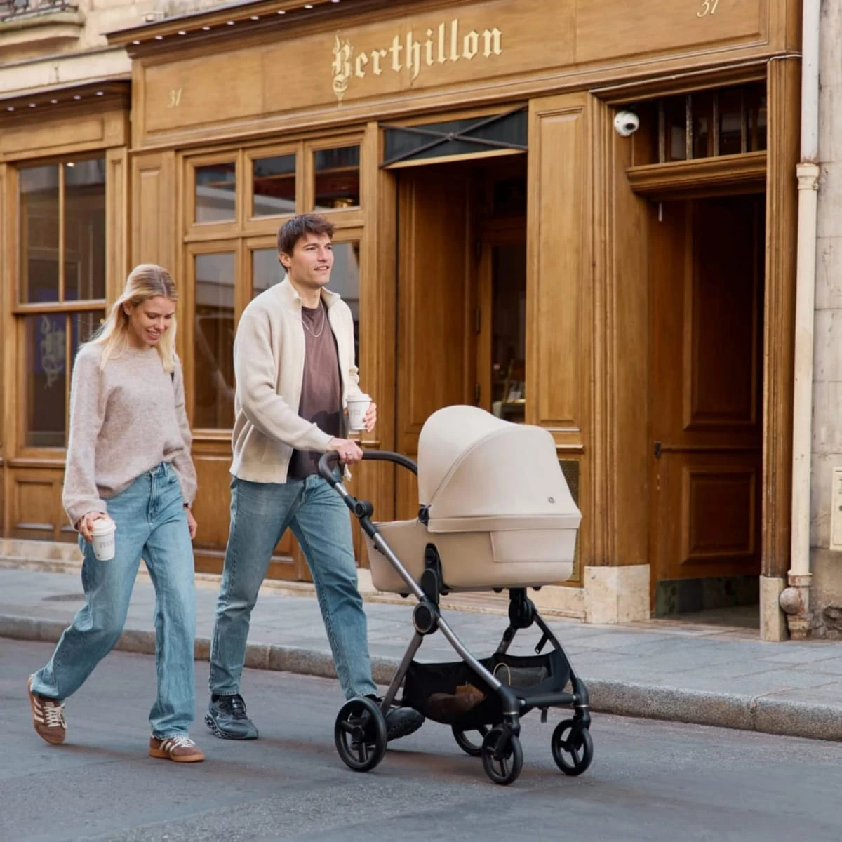 Este spatele vostru, mai degrabă spatele copilului vostru, deoarece spătarul blocului de plimbare poate fi coborât pentru a plasa nou-născutul.