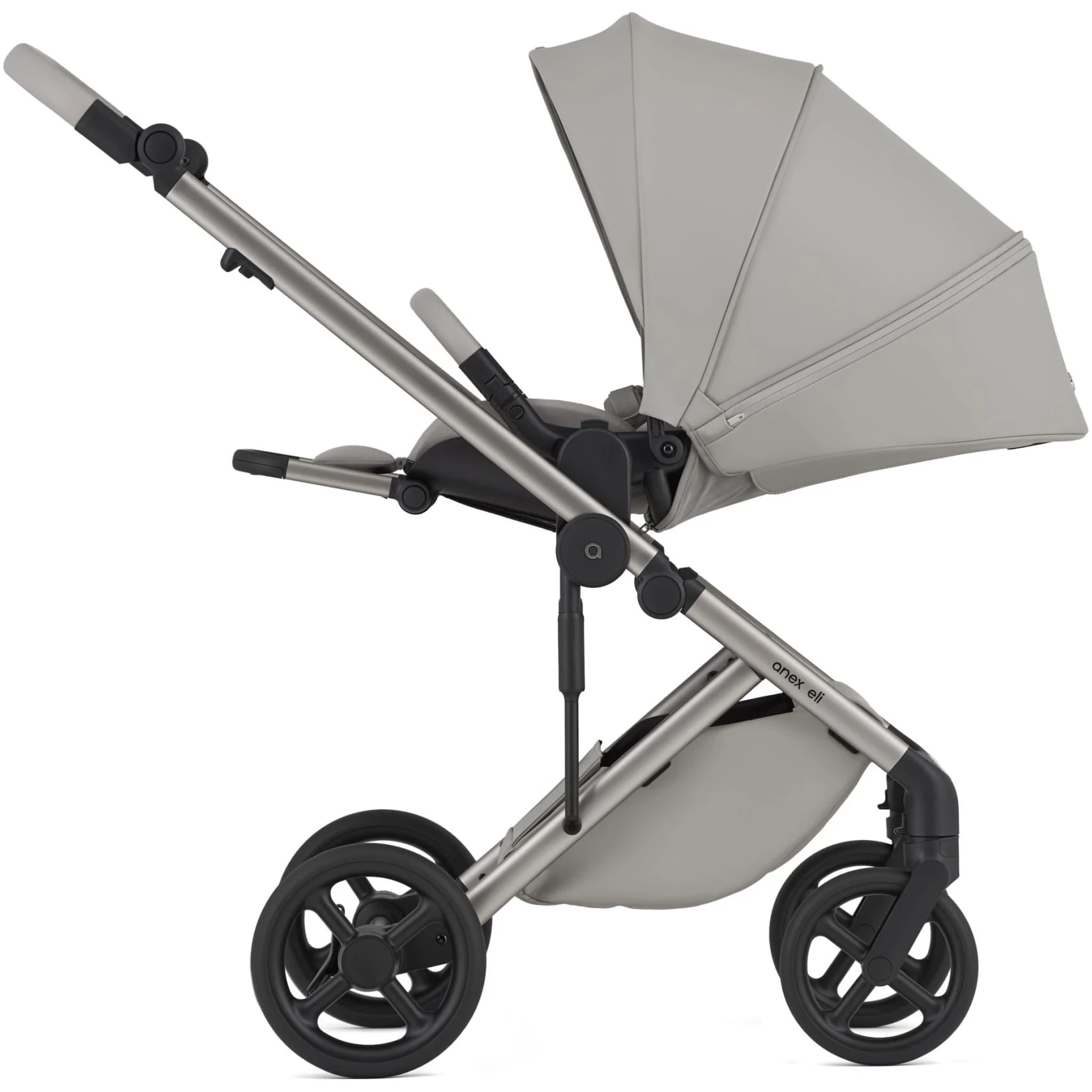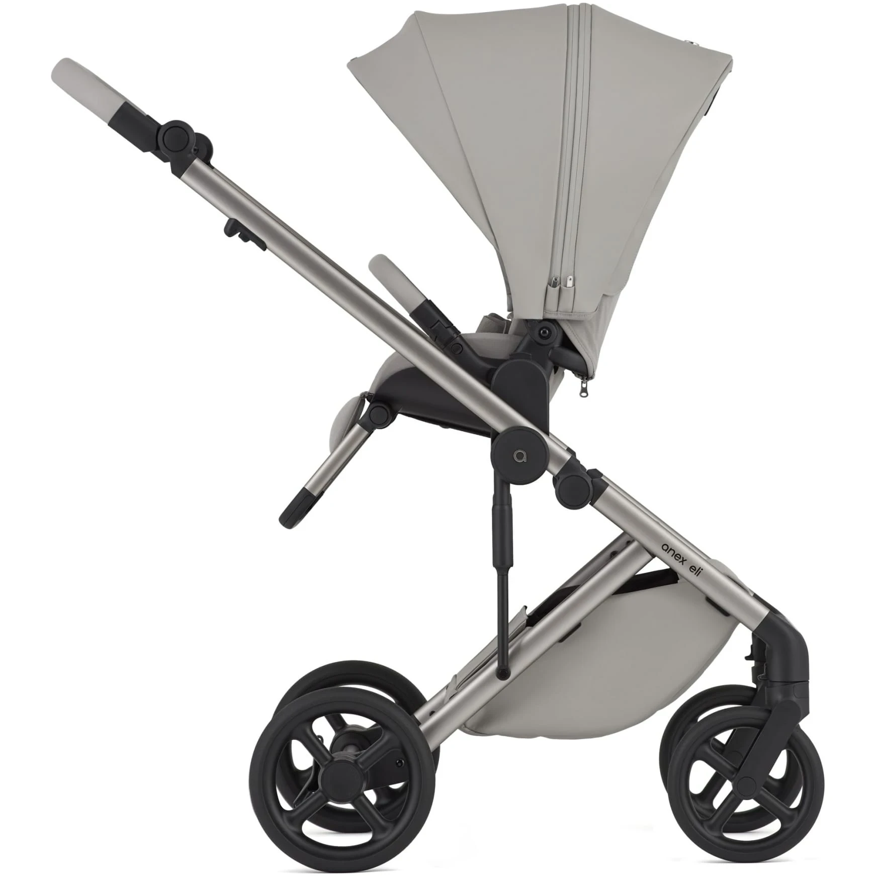 Scaunul de plimbare Anex Eli se pliază în ambele direcții, permițând părinților să transporte căruciorul cu ușurință atunci când este necesar. Adaptatoarele de înălțime sunt incluse în set și asigură o flexibilitate și confort mai mare pentru familiile cu înălțimi diferite.