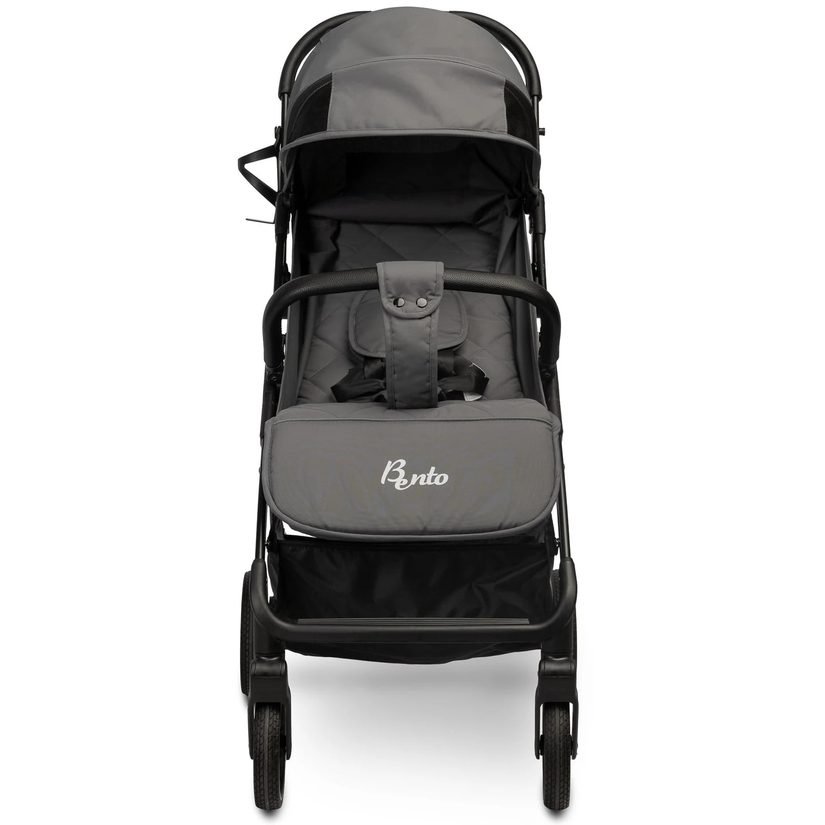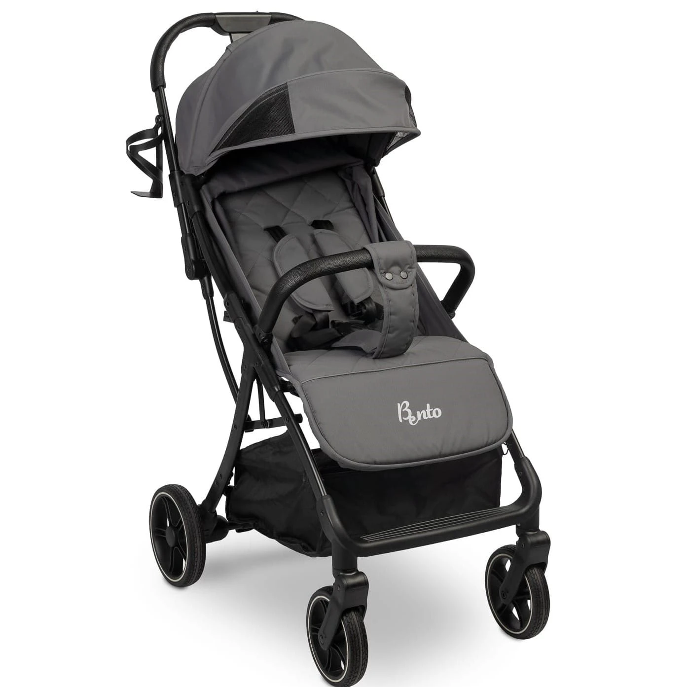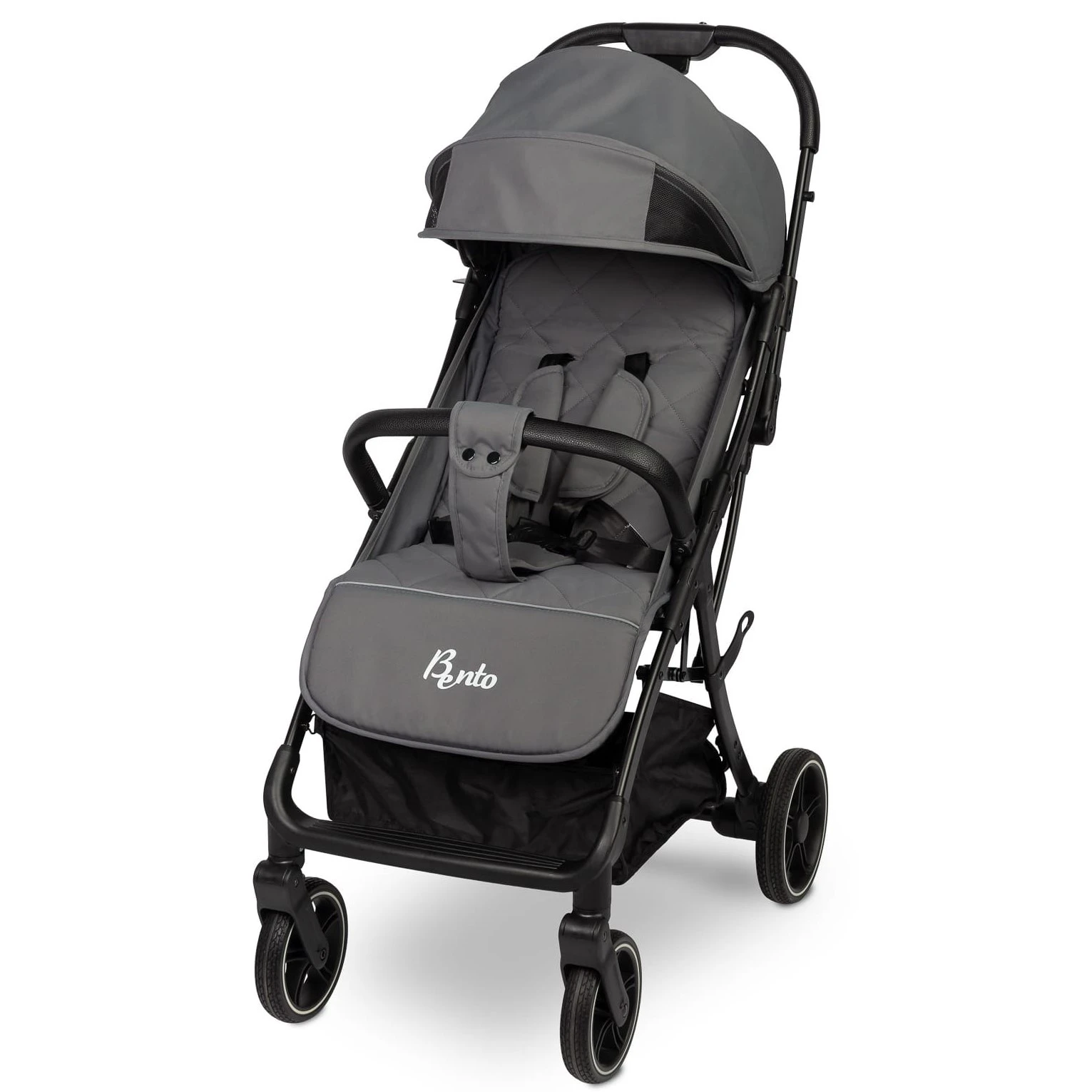 Căruciorul Caretero Bento este un cărucior compact cu sistem de pliere automată. Este destinat copiilor cu vârsta de la 6 luni până la 22 kg (aproximativ 4 ani) și va încânta părinții cu funcționalitatea, greutatea redusă și manevrabilitatea sa. Datorită sistemului de pliere automată, poate fi pliat cu o singură mână în orice moment. Este foarte ușor, cântărind doar 7,6 kg, ceea ce, împreună cu plierea automată, îl face un cărucior ideal pentru plimbări și călătorii. Bento este echipat cu multe mici facilități care contribuie la creșterea confortului pentru copil și părinte. Are un spătar cu înclinare ajustabilă infinit, centuri de siguranță în 5 puncte cu protecții și un suport pentru picioare ajustabil. Părinții vor aprecia de asemenea copertina cu o fereastră acoperită, un coș de cumpărături și un buzunar pentru obiecte mici, precum și un suport pentru sticle. Căruciorul dispune de roți din spumă EVA care nu se pătrund.