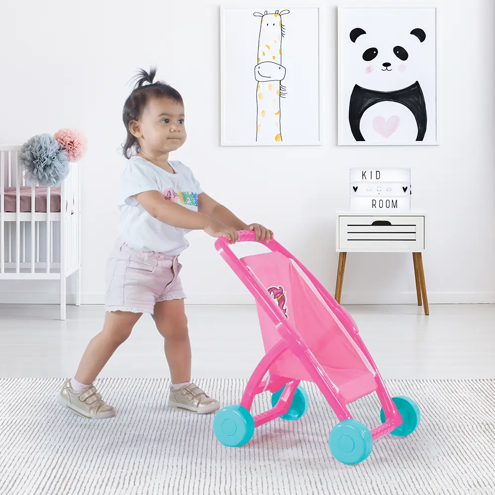 Căruciorul pentru păpuși Dolu Unicorn Pink este alegerea perfectă pentru copiii care adoră jocurile de rol și îngrijirea păpușilor. Cu un design adorabil în nuanțe de roz aprins și imprimeu unicorn, acest cărucior pliabil este ușor de manevrat datorită construcției sale ergonomice și durabile. Este o jucărie care stimulează imaginația și încurajează dezvoltarea responsabilității.