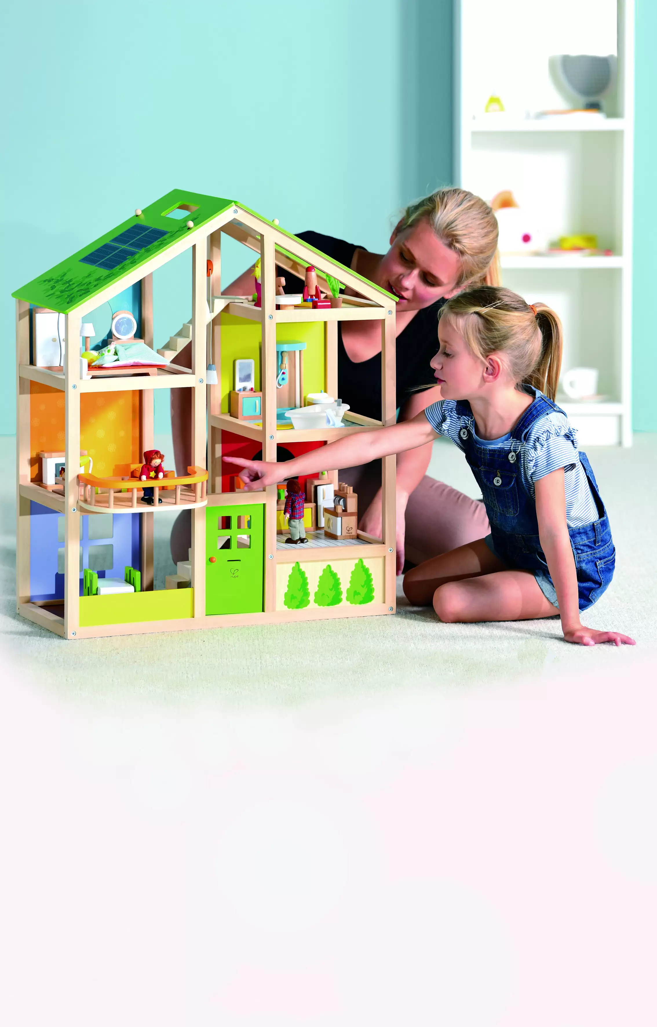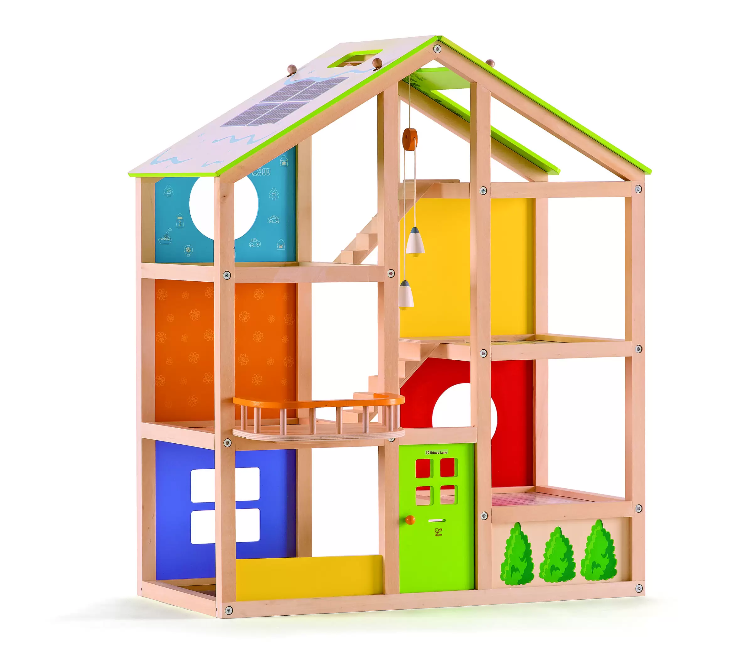 O casă de păpuși veselă din lemn este o jucărie ideală pentru fetele de la 3 ani.