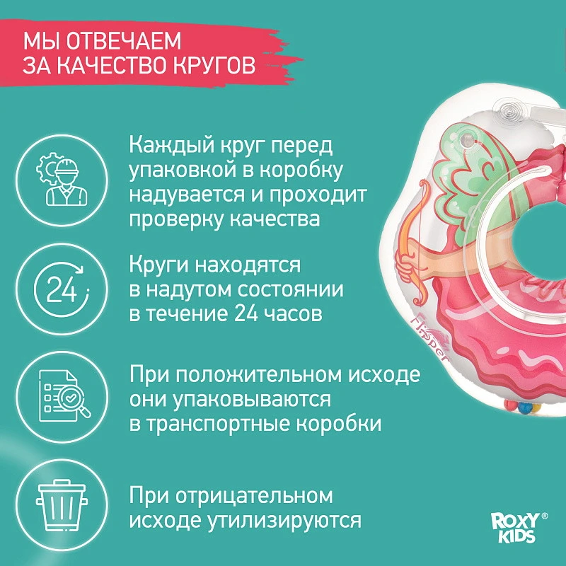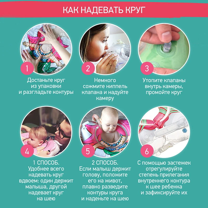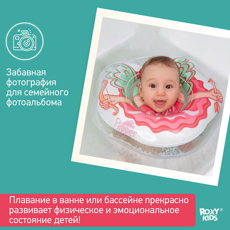 Cercul este destinat băii sigure și distractive încă de la naștere. Permite copilului să își miște liber mâinile și picioarele, în timp ce nasul și gura sunt protejate de apă. În interior, cercul are o jucărie zornăitoare care va amuza copilul.
