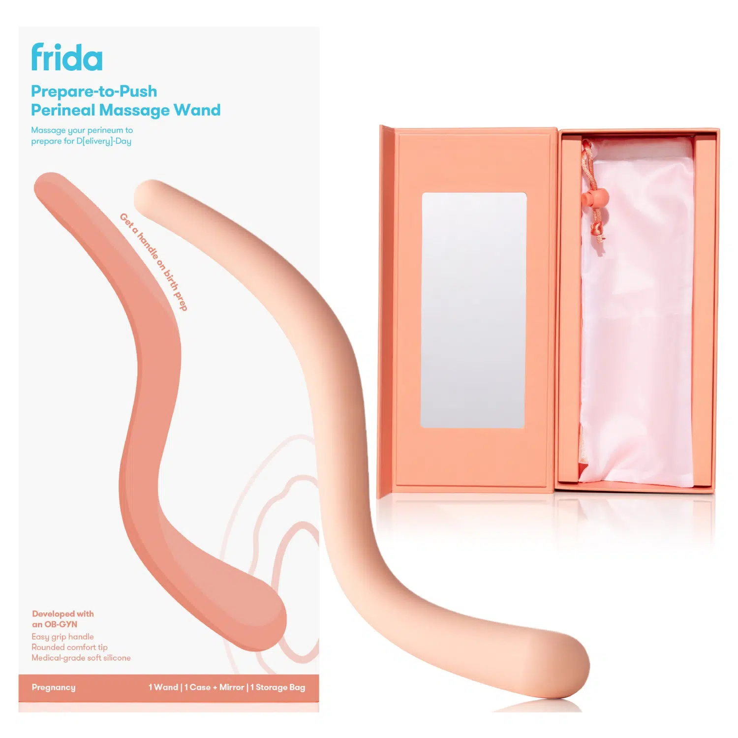 Dezvoltat împreună cu un medic obstetrician-ginecolog (OB-GYN), aplicatorul nostru pentru masaj perineal Prepare-to-Push te ajută să te pregătești pentru naștere cu mai multă încredere. Are lungimea ideală pentru a ajunge ușor în jurul burticii, include o oglindă pentru a ghida masajul și este realizat din silicon 100% sigur pentru corp, pentru o utilizare igienică în trimestrul al treilea. Așază oglinda, găsește o poziție confortabilă și începe masajul.