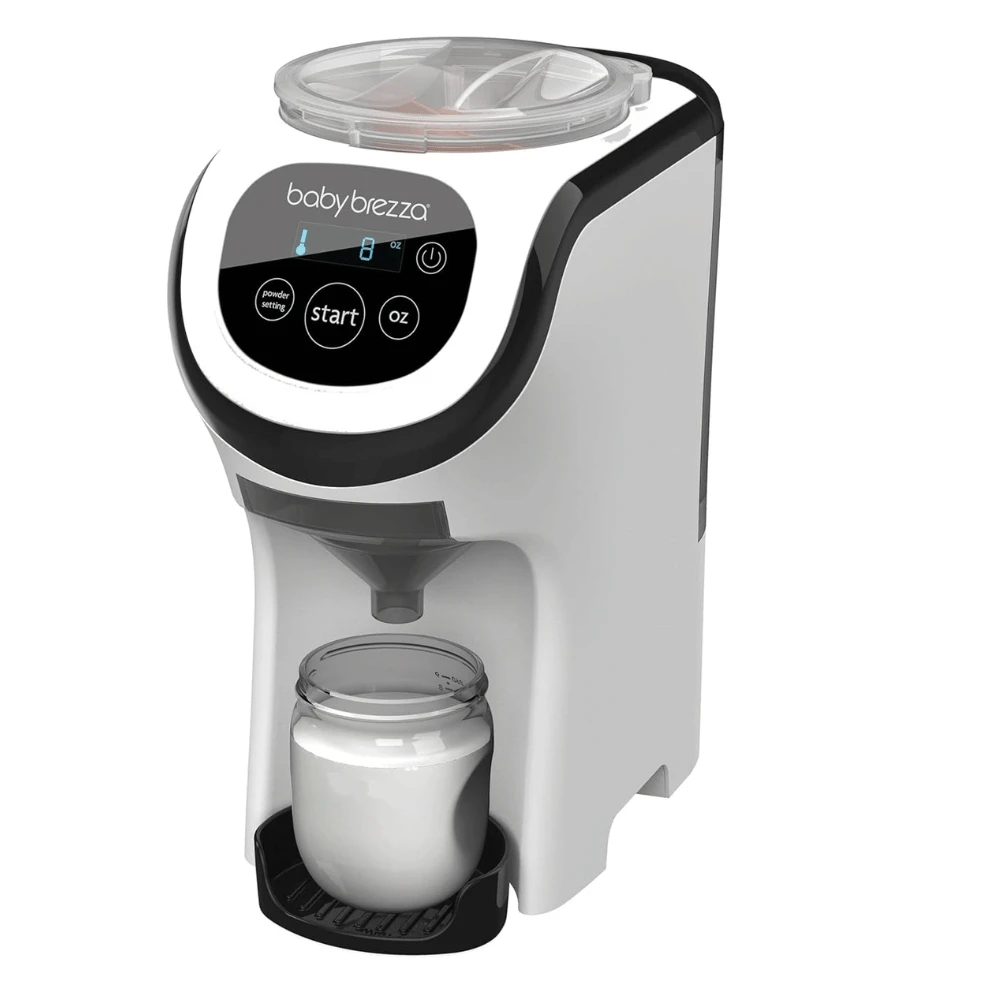 Baby Brezza Formula Pro Mini este varianta compactă a aparatului Formula Pro Advanced, ideală pentru călătorii sau spații mici. Acesta prepară automat biberoane calde cu formulă între 60 și 300 ml, combinând funcțiile unui încălzitor cu cele ale unui aparat de amestecare automată.