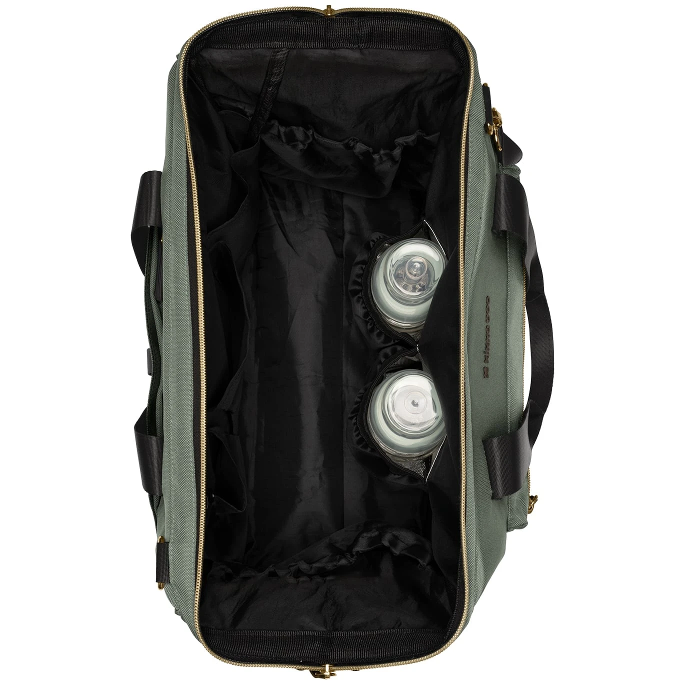 - Geanta include un buzunar rezistent la apă pentru articole umede și două compartimente izolate pentru biberoane, care mențin temperatura apei sau a laptelui timp de ore întregi, pentru ca esențialele să fie mereu la îndemână și în siguranță.