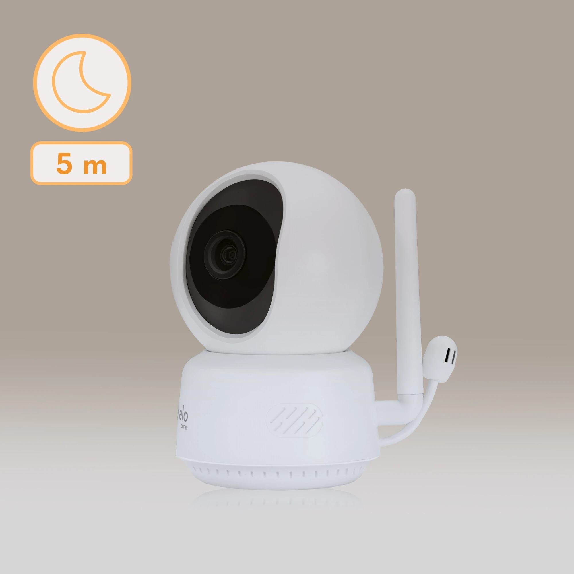 Camera rotativă la 360° poate fi controlată de la distanță. De asemenea, camera poate urmări automat copilul dacă acesta iese din câmpul său vizual. Senzorii de mișcare și sunet cu sistem de notificare automată simplifică semnificativ îngrijirea. Cântecele de leagăn și sunetele preîncărcate ajută copilul să adoarmă, în timp ce comunicarea bidirecțională permite auzirea și vorbirea cu copilul. Monitorul pentru bebeluși oferă sunet și video clare, fără întreruperi. Noaptea, fără iluminare suplimentară, camera poate vedea până la 5 metri, iar LED-ul frontal poate fi oprit pentru a nu deranja copilul. Bateria asigură până la 8 ore de utilizare.