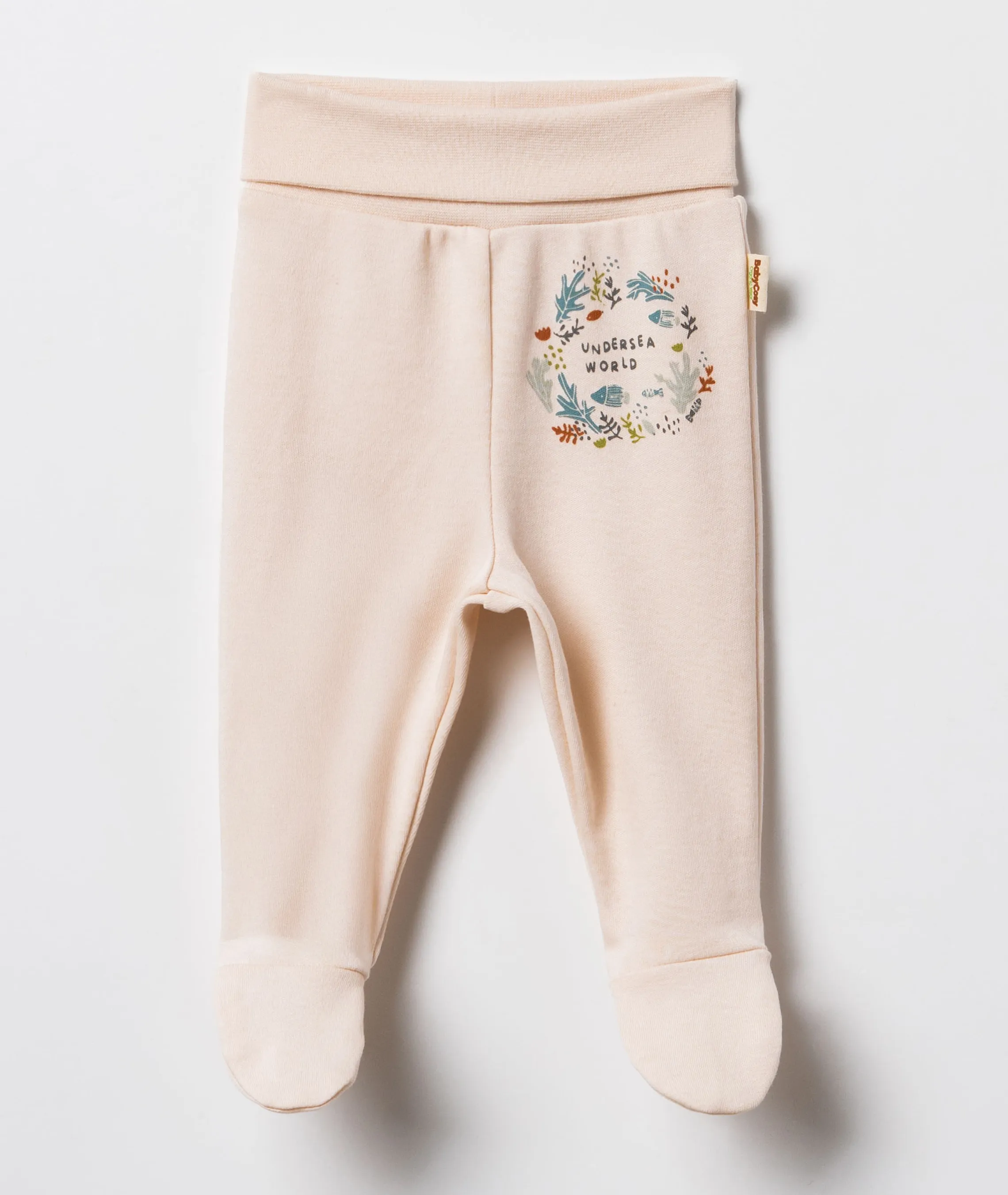 Setul de pantaloni BabyCosy Green & Ecru este ideal pentru confortul zilnic al bebelușului. Modelele sunt bune cu botoșei integrați, oferind un plus de căldură și protecție. Un model este verde, decorat cu imprimeu de frunze, iar celălalt este ecru, cu inscripția „Undersea World”, pentru un look modern și jucăuș.