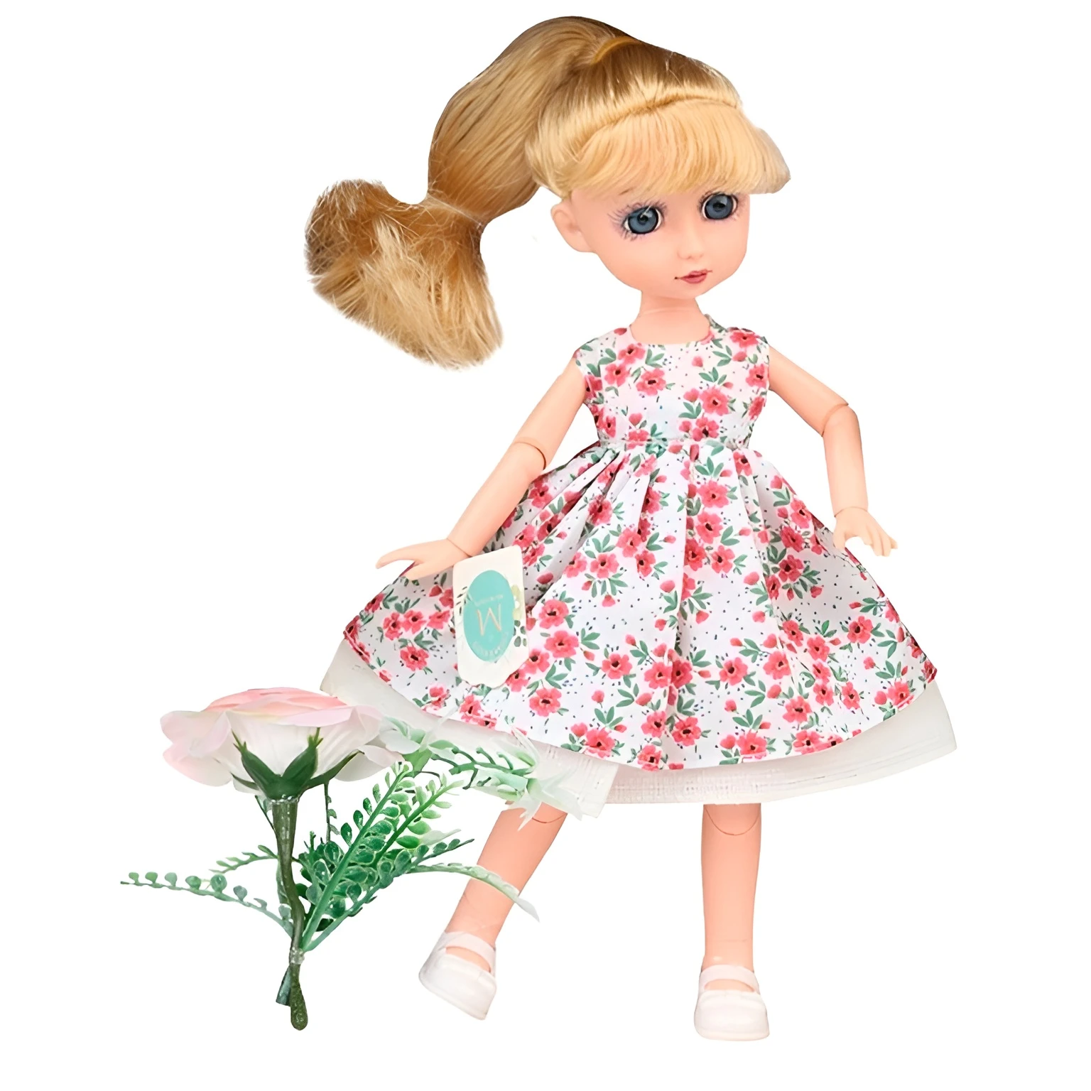 Păpușa Essa Toys Mulisha în rochie cu flori și accesorii
