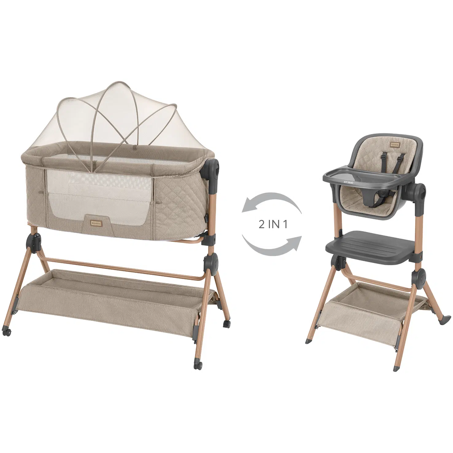 SLEAT ME este un produs multifuncțional 2în1 care se transformă dintr-un pătuț lateral într-un scaun de masă în doar câțiva pași simpli. Conceput pentru a oferi confort bebelușului tău atât în timpul somnului, cât și al meselor, este soluția perfectă pentru economisirea spațiului în locuințele moderne.