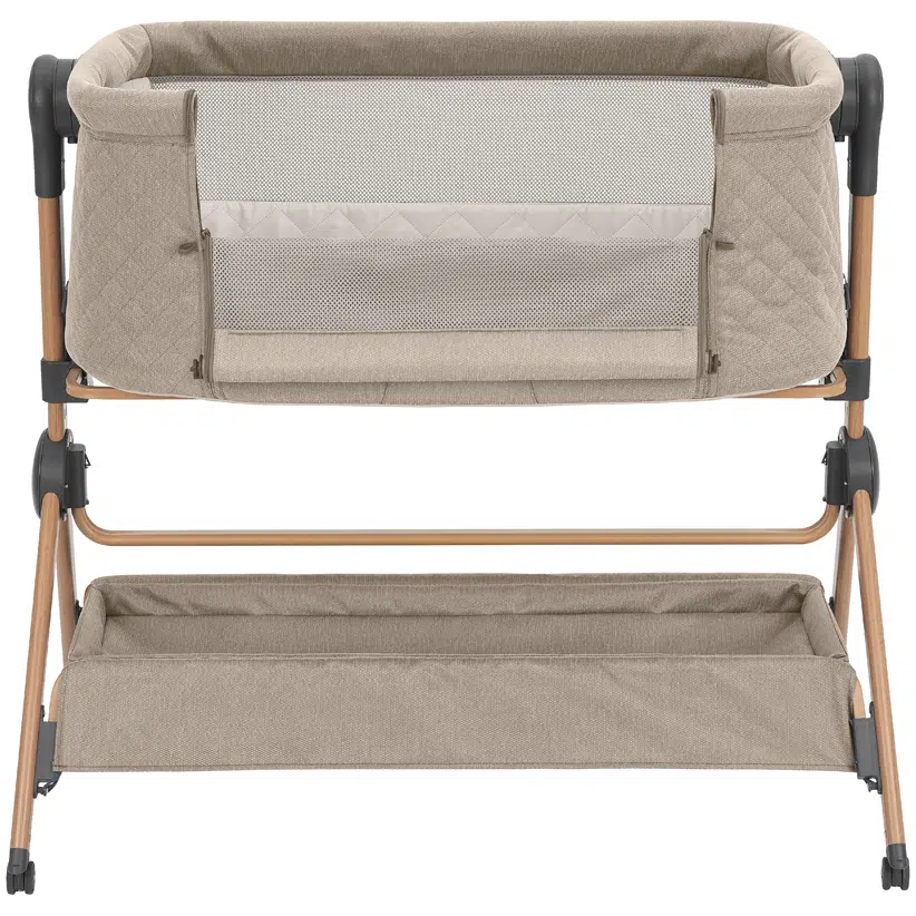 - Pătuț lateral – Potrivit de la naștere până la 6 luni (până la 9 kg), cu înălțime reglabilă, poziție anti-reflux, panouri din plasă pentru o bună circulație a aerului, lateral rabatabil și curea pentru fixarea de patul părinților, pentru un somn liniștit.