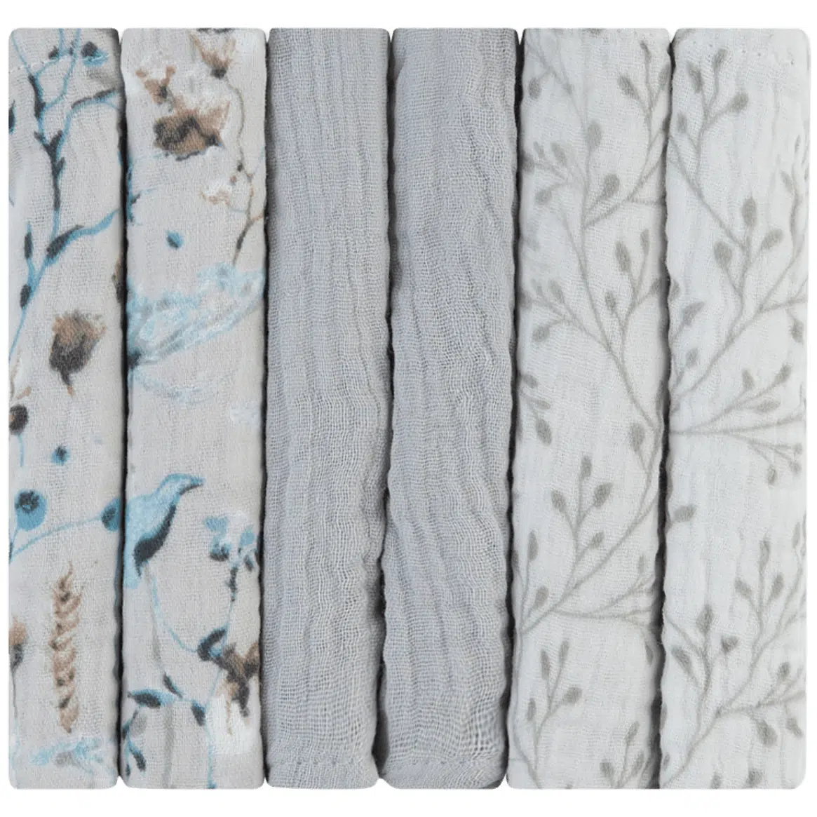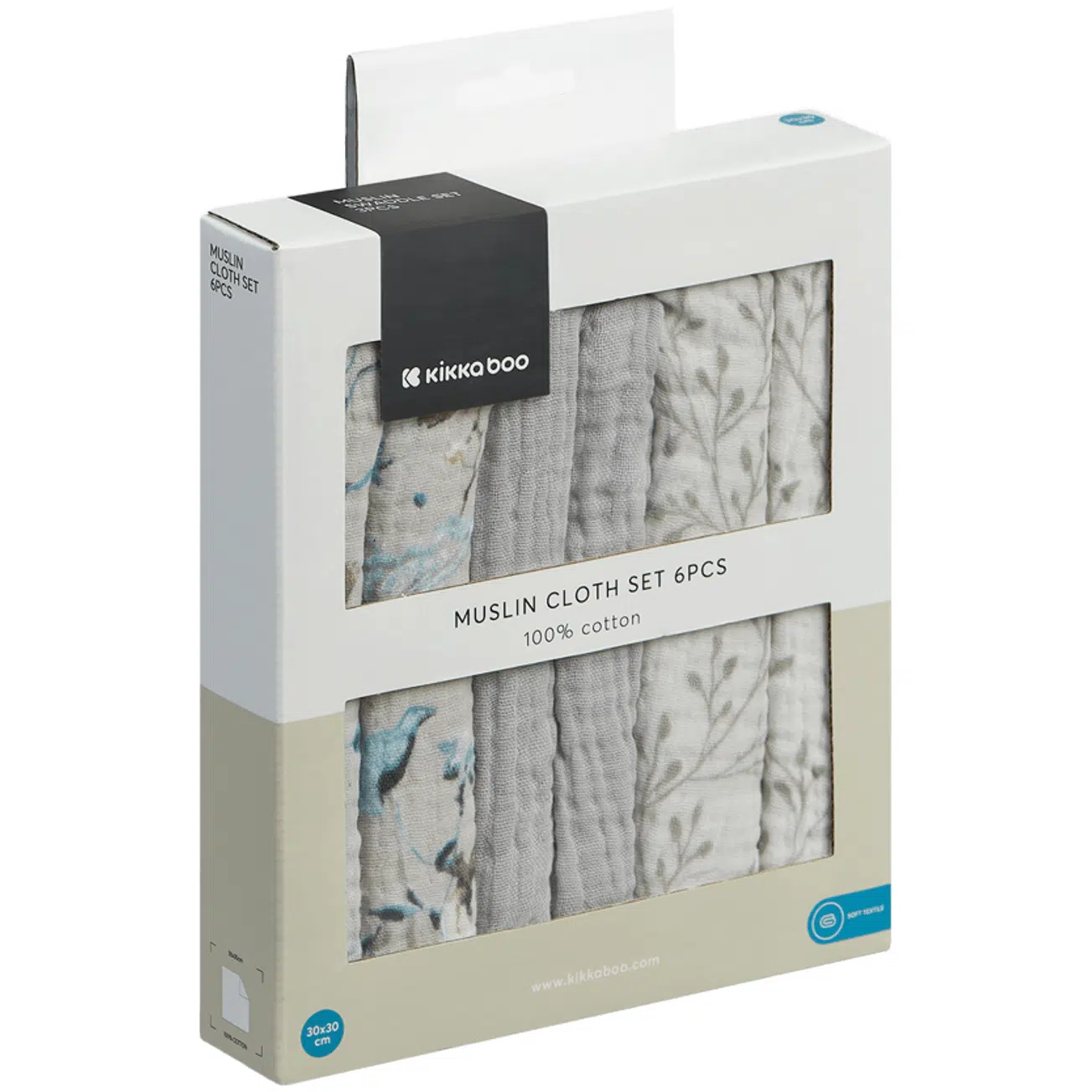 Pelinci din muselina Kikkaboo Dreamy Fields Grey (30x30 cm), 6 buc