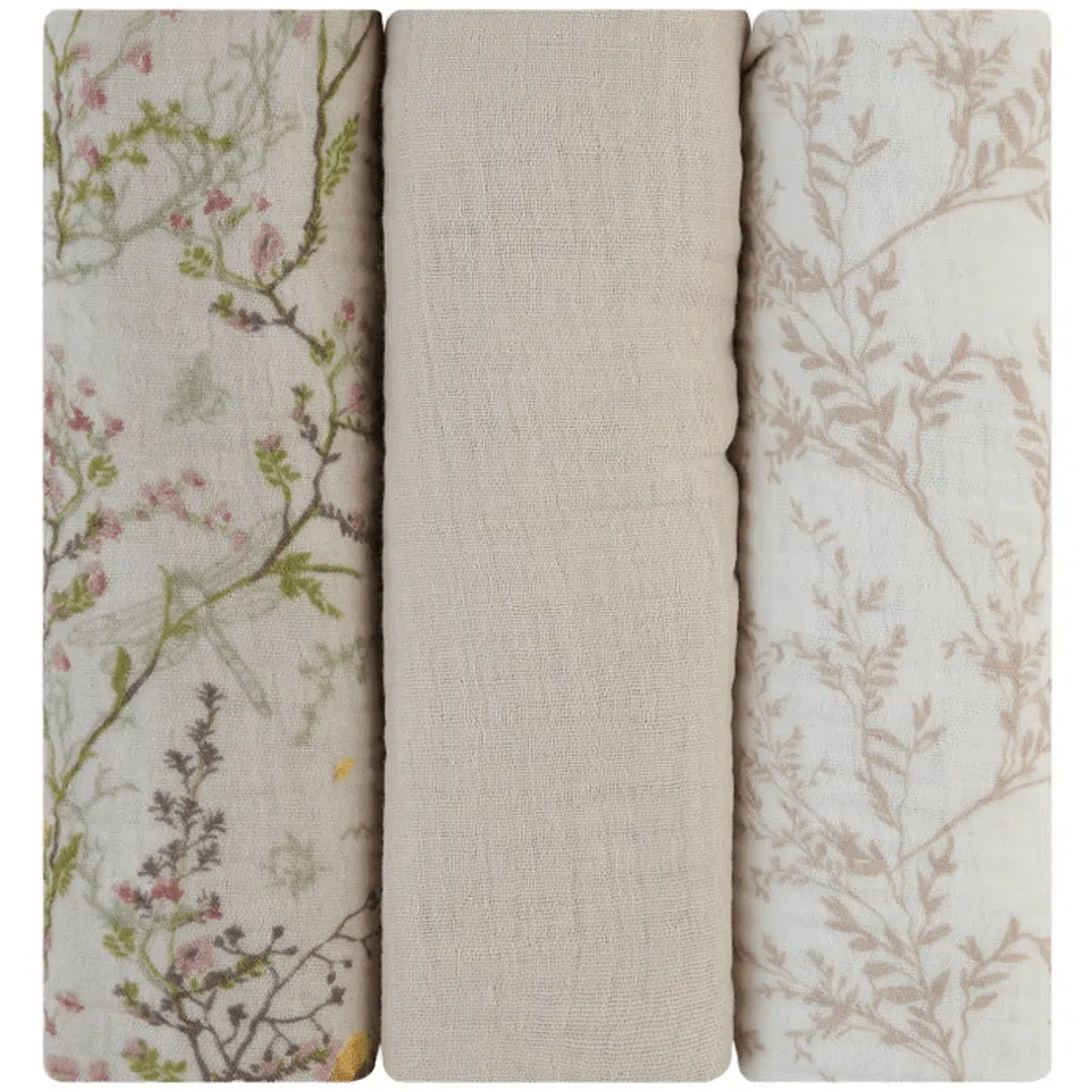 Pelinci din muselina KikkaBoo Secret Garden Beige (75x75 cm), 3 buc.