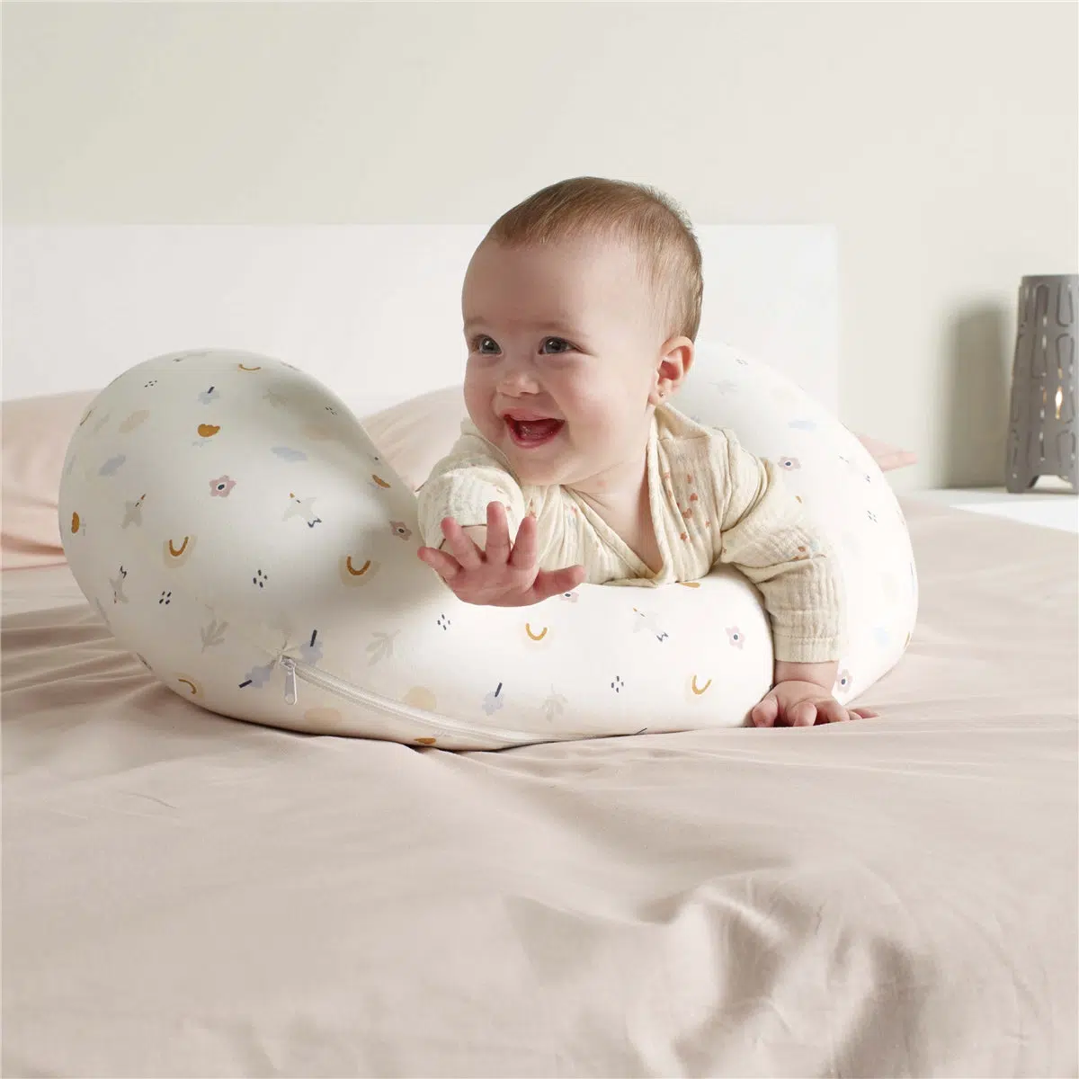 Are o formă ergonomică pentru alăptare confortabilă, iar umplutura este realizată din microbile, astfel încât se adaptează mai bine fiecărei poziții.