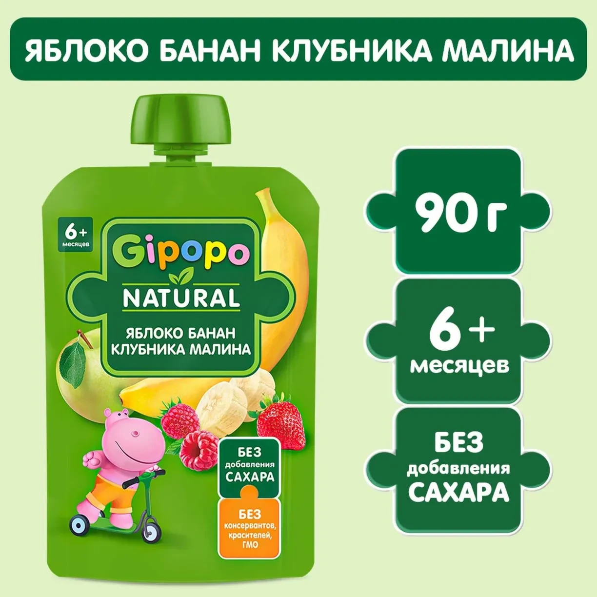 Piure Gipopo mar-banana-capsuna-zmeura (6 luni+), 90 g