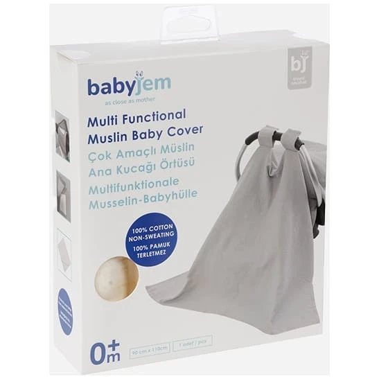 Husa multifuncțională din muselină Babyjem oferă delicatețe și respirabilitate datorită țesăturii din muselină din bumbac 100%, prietenoasă cu pielea sensibilă a bebelușului tău. Această husă versatilă, care poate fi folosită pe genunchii mamei, în cărucior, în scaunul auto sau ca husă de alăptare, oferă protecție împotriva soarelui, vântului și altor factori externi, creând un mediu liniștit pentru bebeluș.