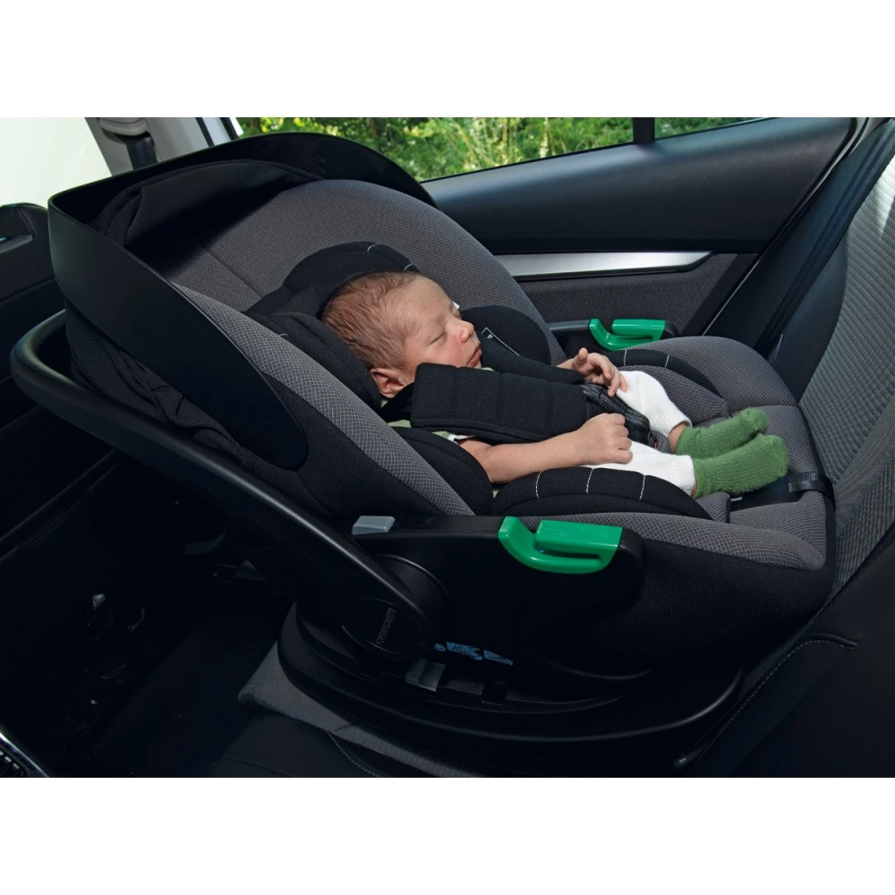 - Poate fi utilizat cu baza rotativă Rek i-Size (se achiziționează separat) — facilitează așezarea copilului în mașină
