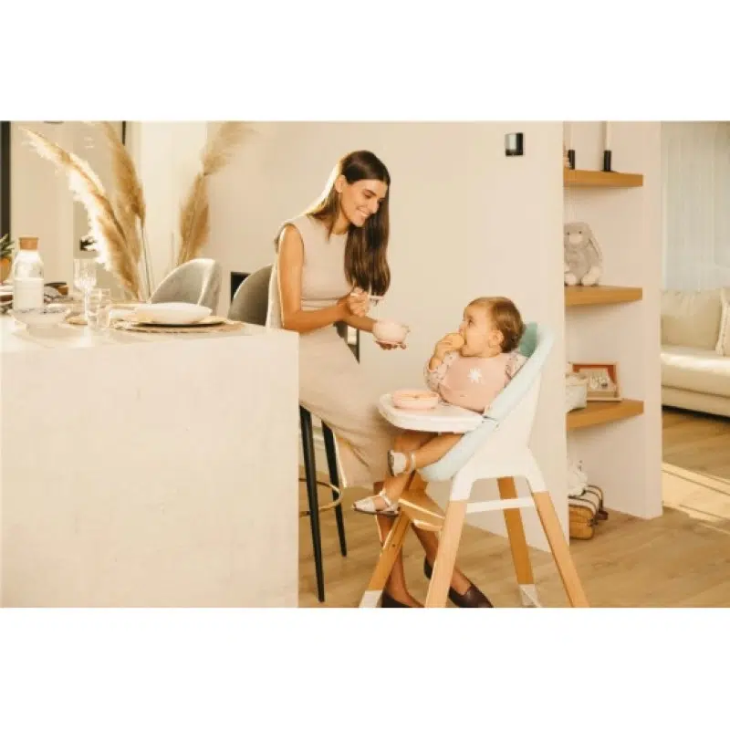De la vârsta de 6 luni, când bebelușul începe diversificarea alimentației, Wooddy poate fi folosit ca scaun de masă până la vârsta de 3 ani.