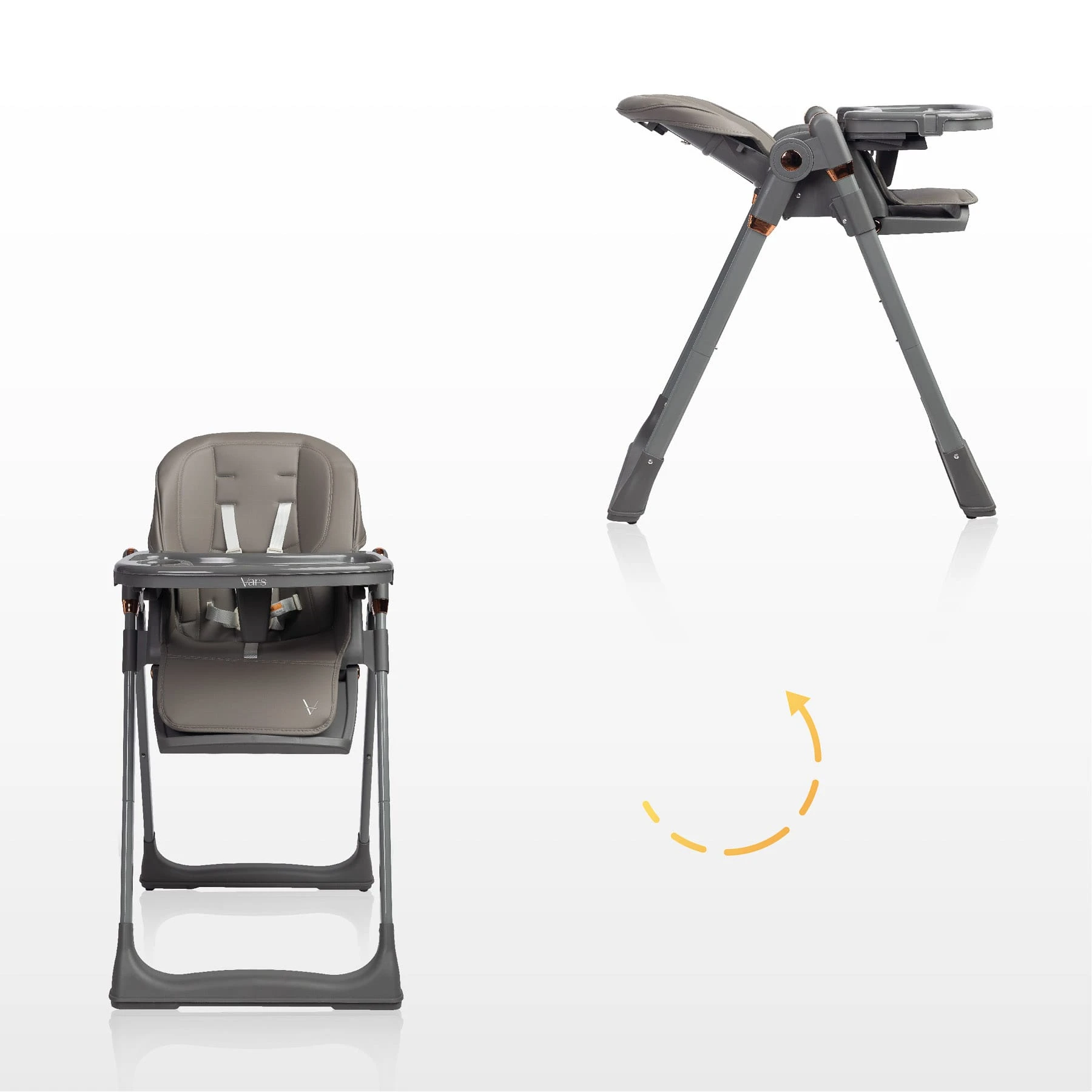 Scaunul spațios cu tavă reglabilă și centura de siguranță cu 5 puncte asigură confortul și siguranța în timpul mesei. - Ușurință și compactitate: