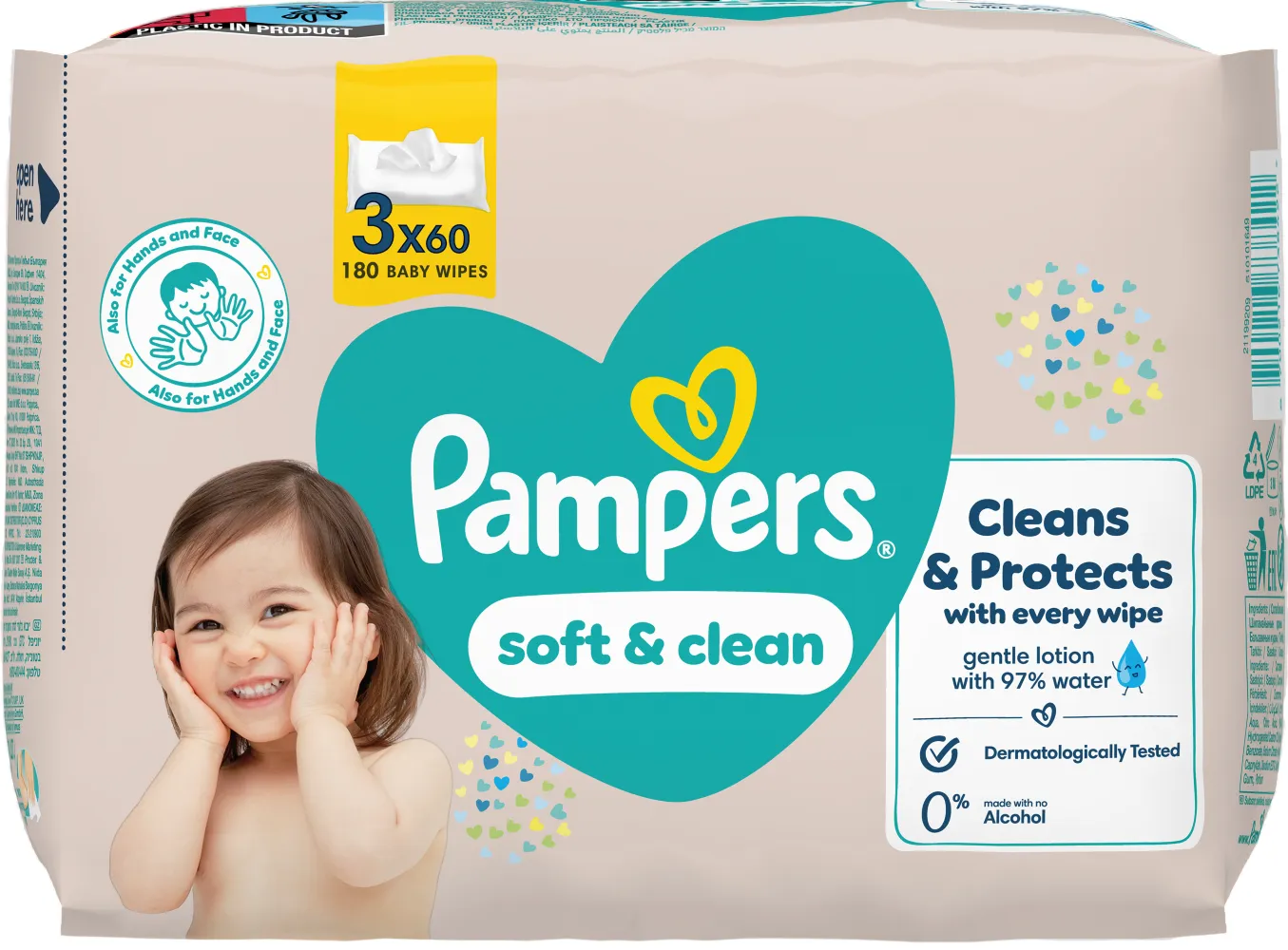 Servetele umede Pampers Soft & Clean, 3x60 buc.