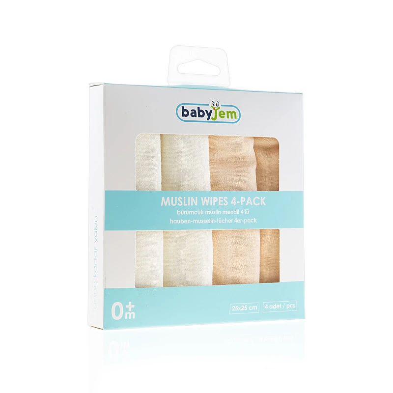 Setul de 4 prosopele din muselină BabyJem este perfect pentru îngrijirea zilnică a bebelușului, datorită texturii sale moi, delicate și respirabilității ridicate. Fabricate din muselină 100% bumbac, aceste prosopele sunt ideale pentru pielea sensibilă a bebelușului, oferind o combinație perfectă între finețe și absorbție.