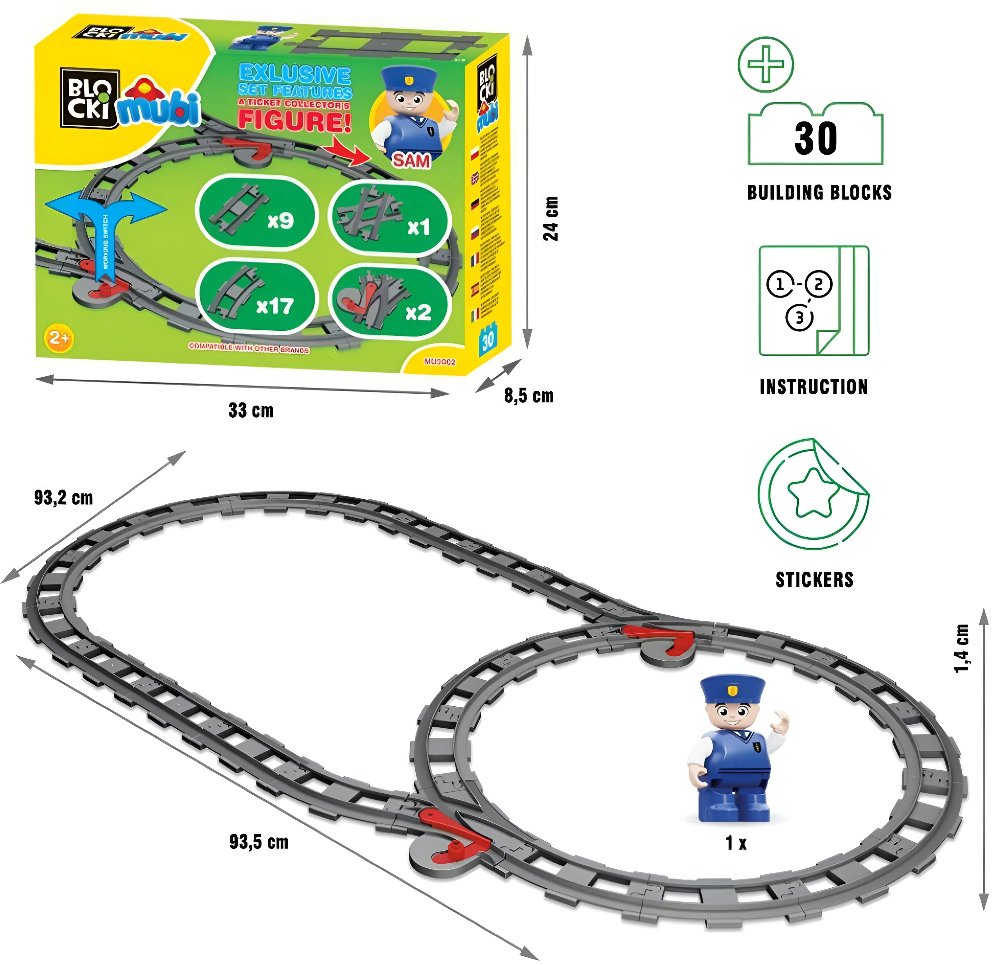 Set construcție Blocki Mubi Cale Ferată, 30 elemente