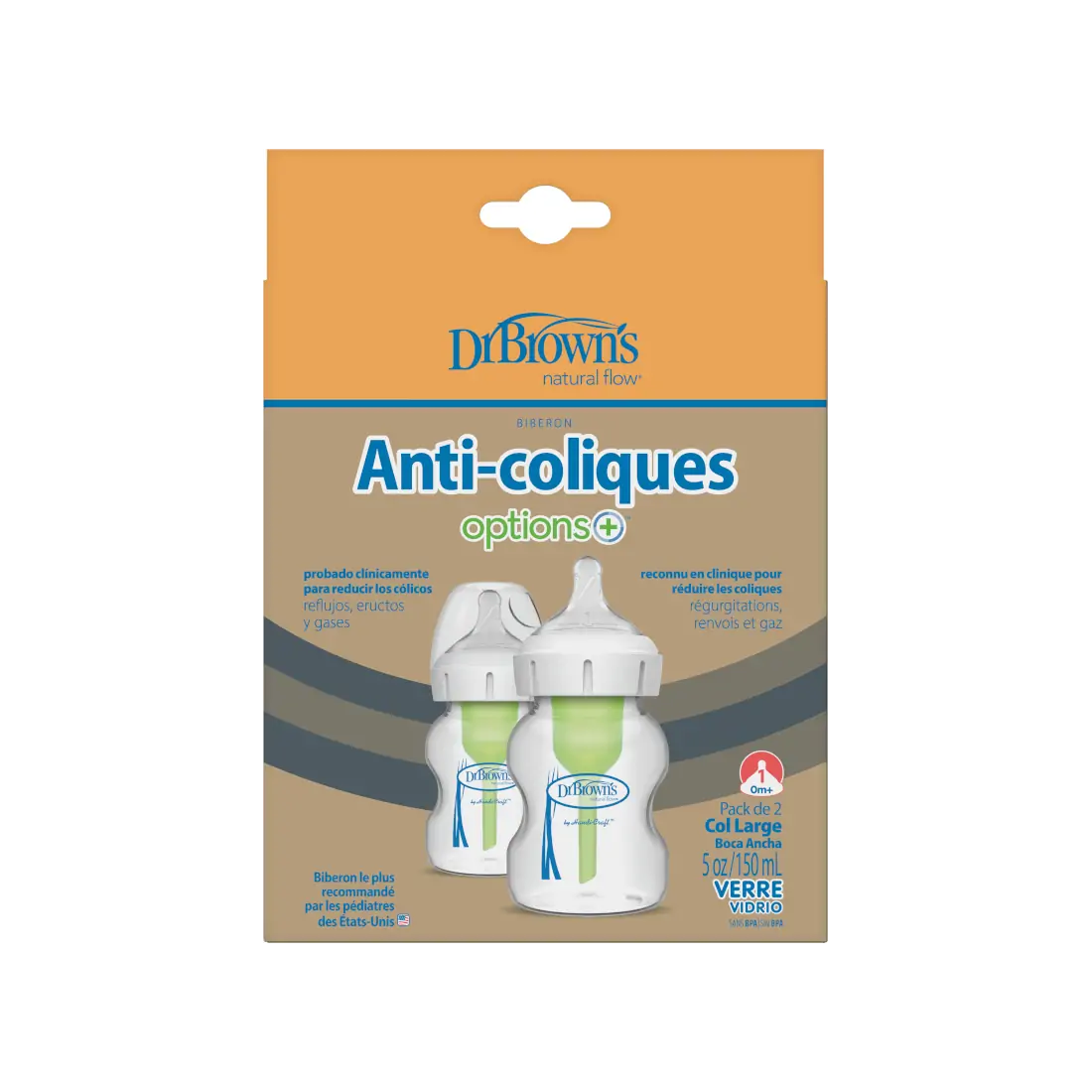 Biberon pentru bebeluși din sticla Dr. Browns Options+ cu gât larg, 150 ml, 2 buc.