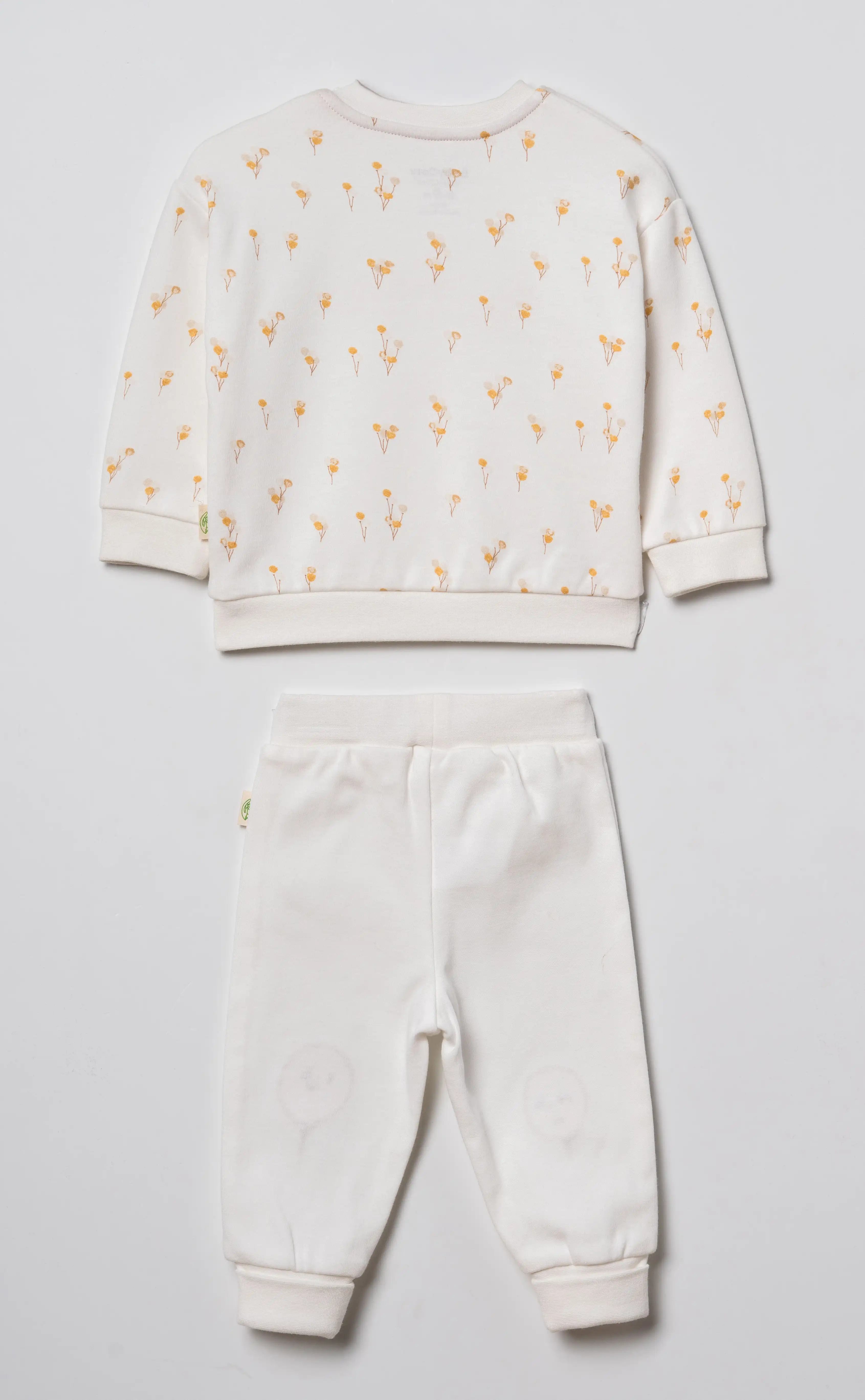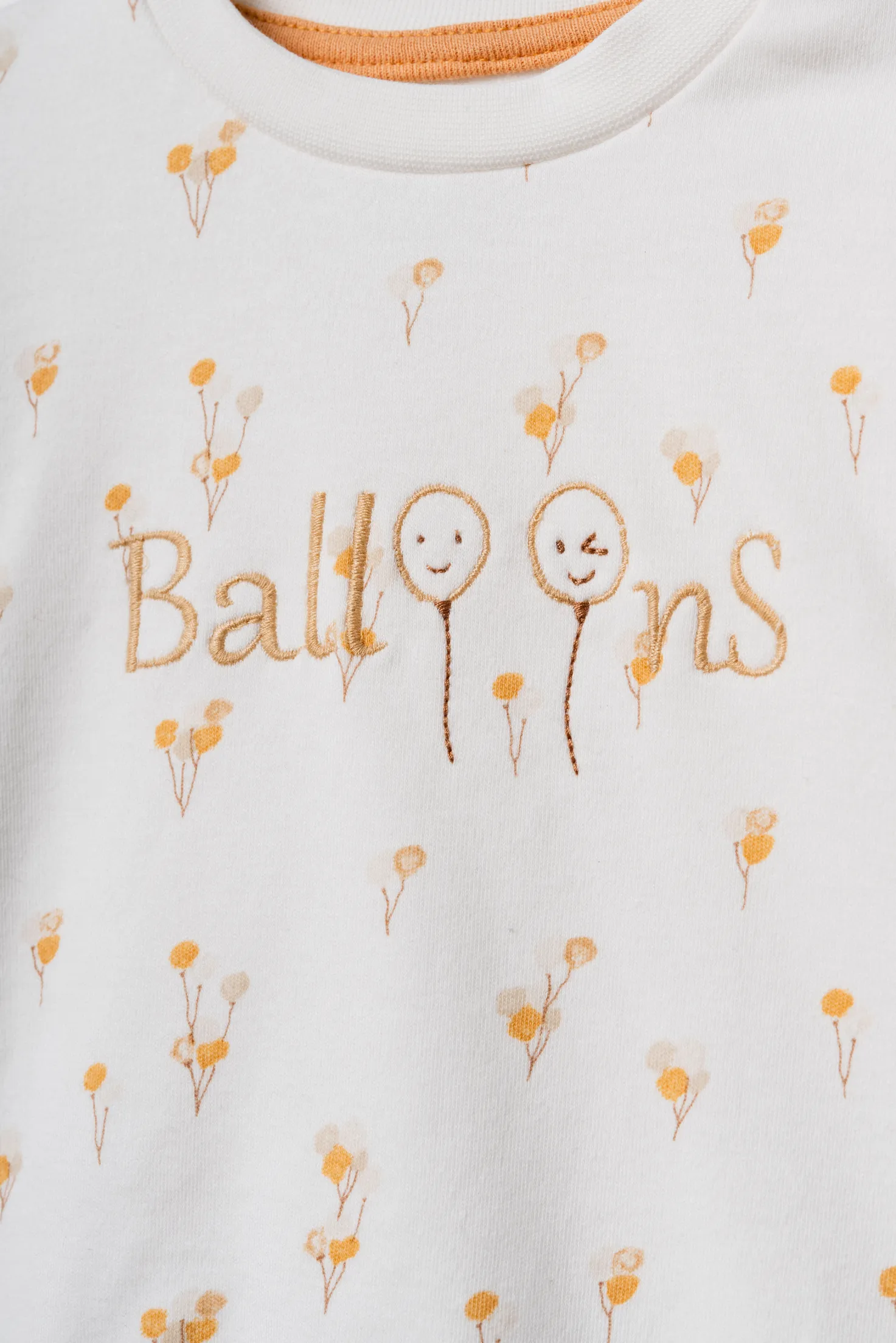 Setul BabyCosy Ivory & Orange este un комплект confortabil și practic pentru bebeluși, ideal pentru purtare zilnică. Bluza ivory cu detalii portocalii și imprimeu cu baloane, alături de pantalonii comozi, oferă un aspect vesel și modern.